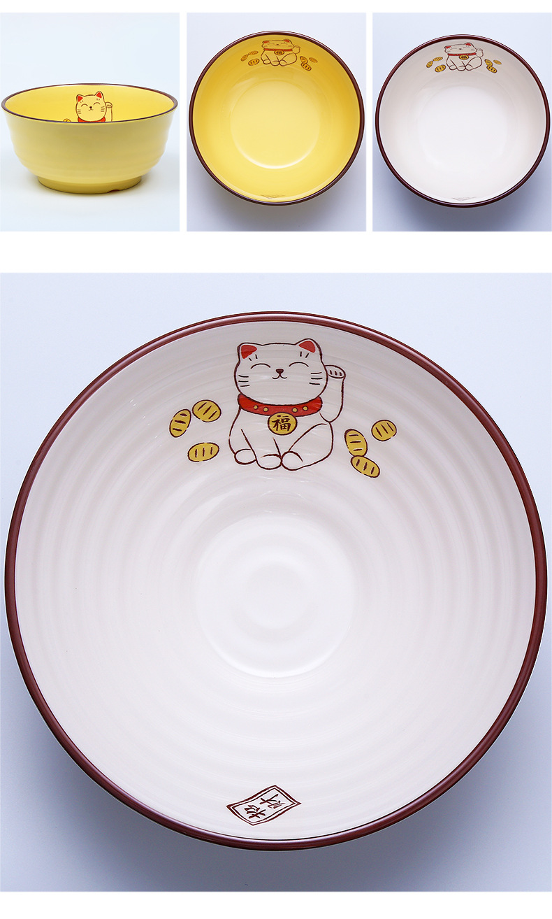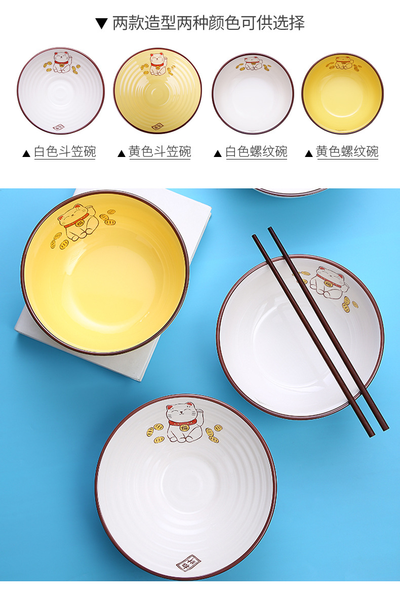 Wuhe 럭키 캣 대형 그릇 수프 그릇 멜라민 국수 그릇 가정용 대형 식기 라면 대나무 모자 뿔 달팽이 국수 그릇스토어 가기