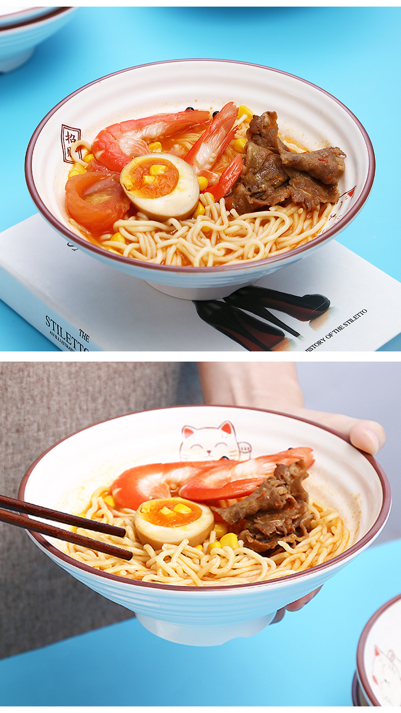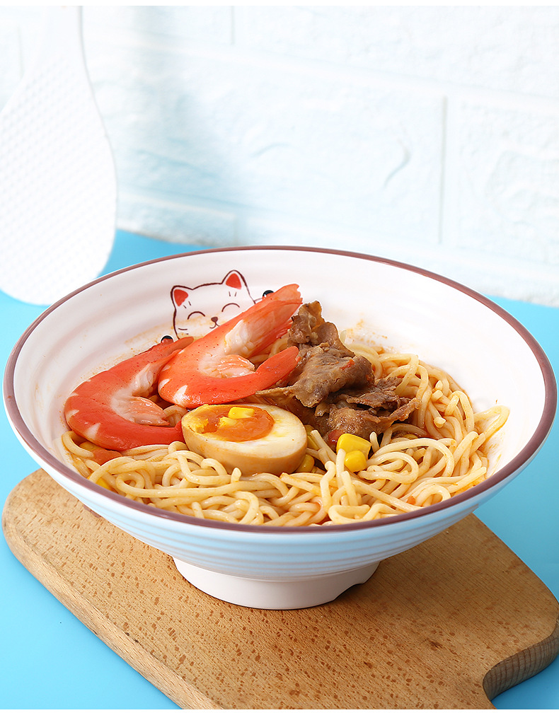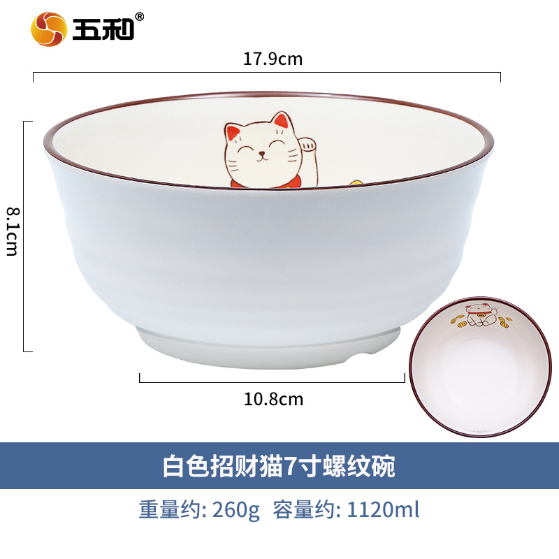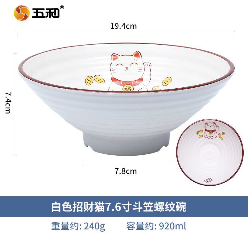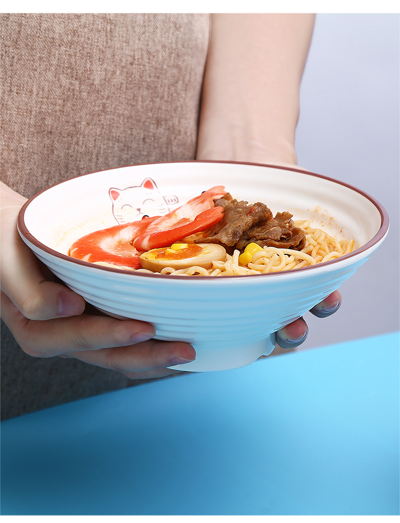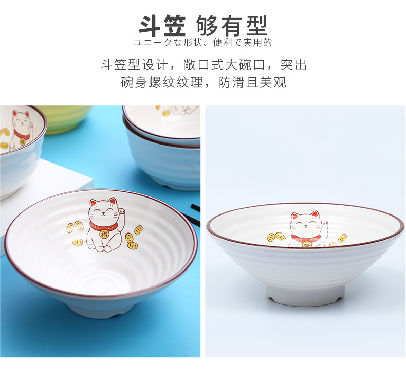 Wuhe 럭키 캣 대형 그릇 수프 그릇 멜라민 국수 그릇 가정용 대형 식기 라면 대나무 모자 뿔 달팽이 국수 그릇