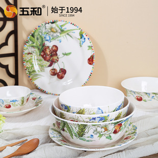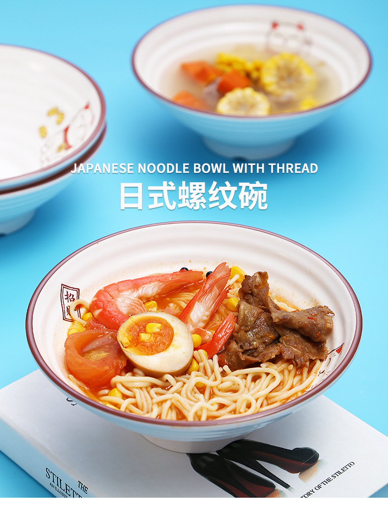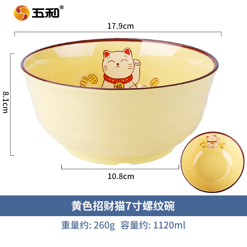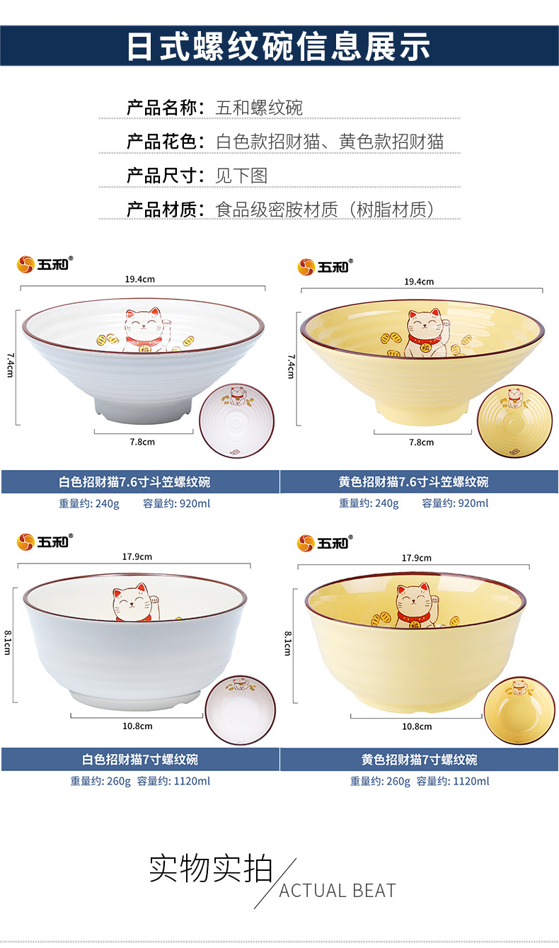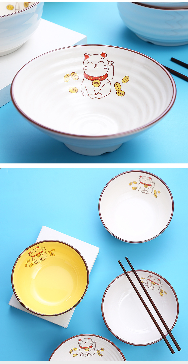 Wuhe 럭키 캣 대형 그릇 수프 그릇 멜라민 국수 그릇 가정용 대형 식기 라면 대나무 모자 뿔 달팽이 국수 그릇