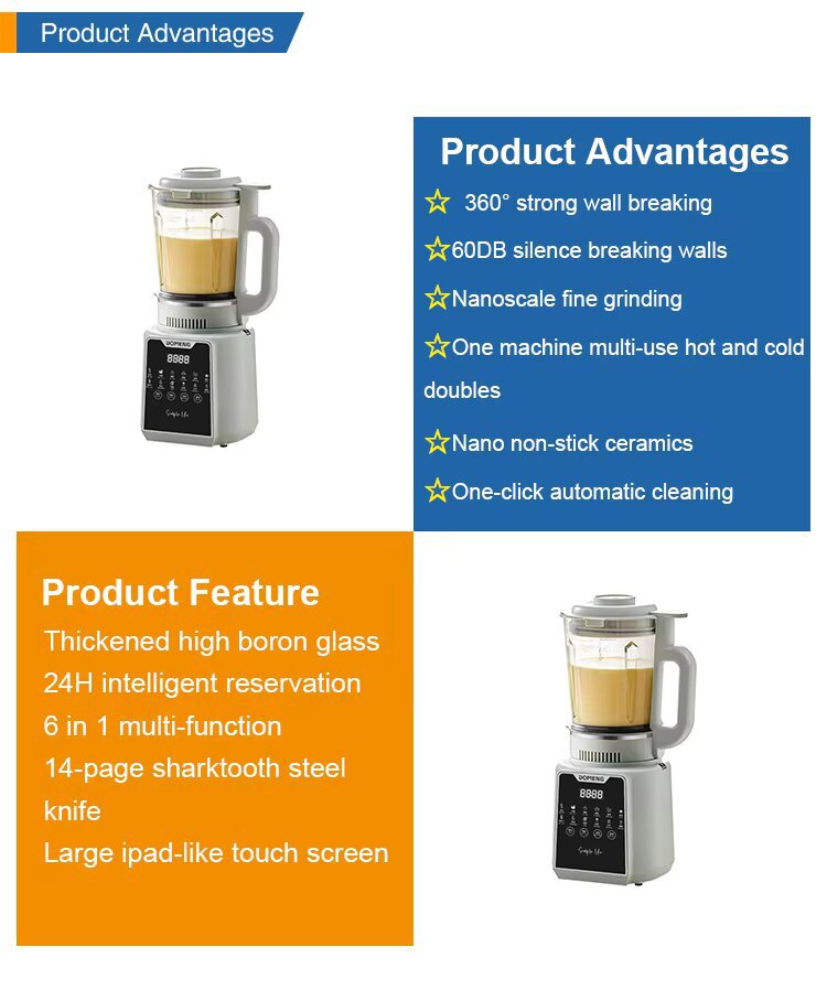 Domon 가정용 완전 자동 난방 대두유 벽 깨는 기계 필터가없는 지능형 음소거 110V 미국 게이지 유럽 게이지