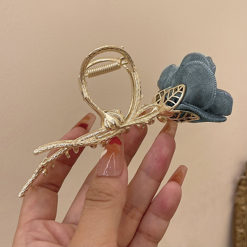 블루 원사 모리 디자인 상어 클립 대형 하이 엔드 센스 슈퍼 페어리 잡아 클립 여성 우아한 머리핀 뒷면