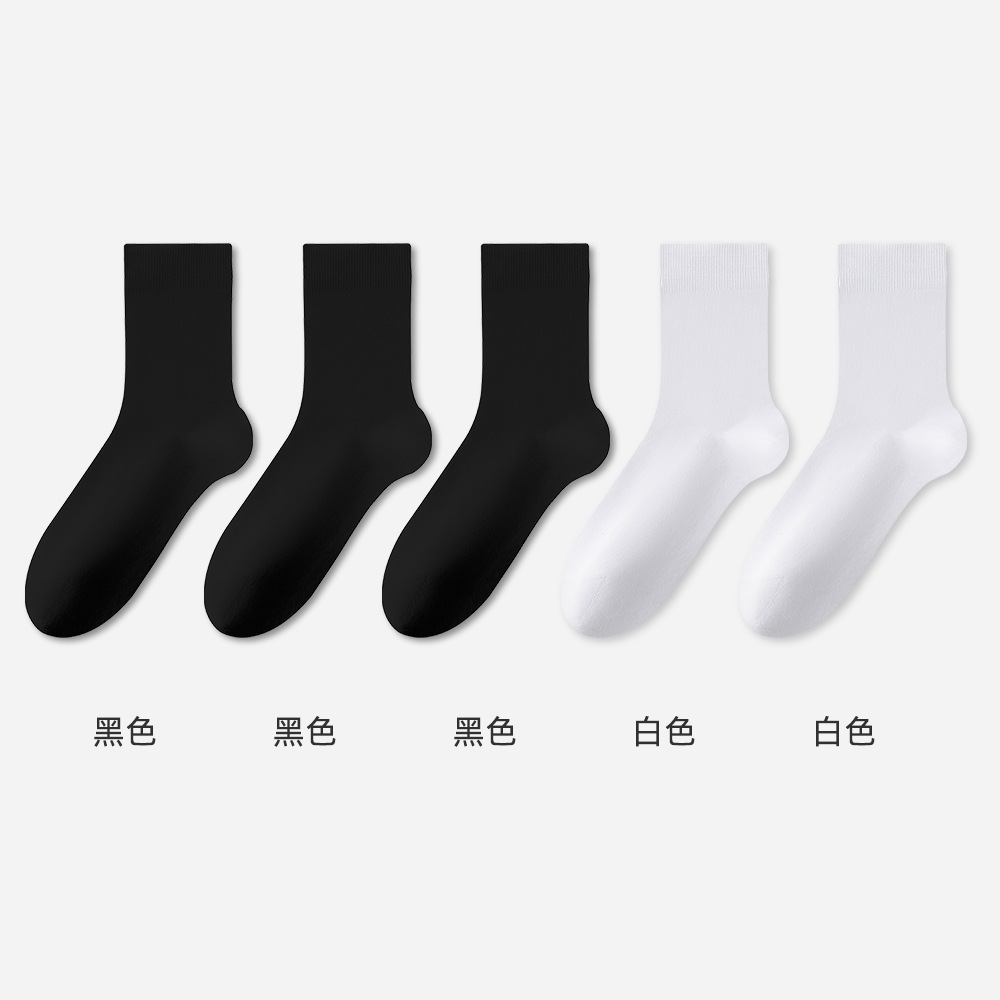 남성용 면 양말, 봄, 가을 순면 항균 면 양말, 사계절 블랙 & 화이트 남성용 롱 양말, 비즈니스 본리스 양말스토어 가기