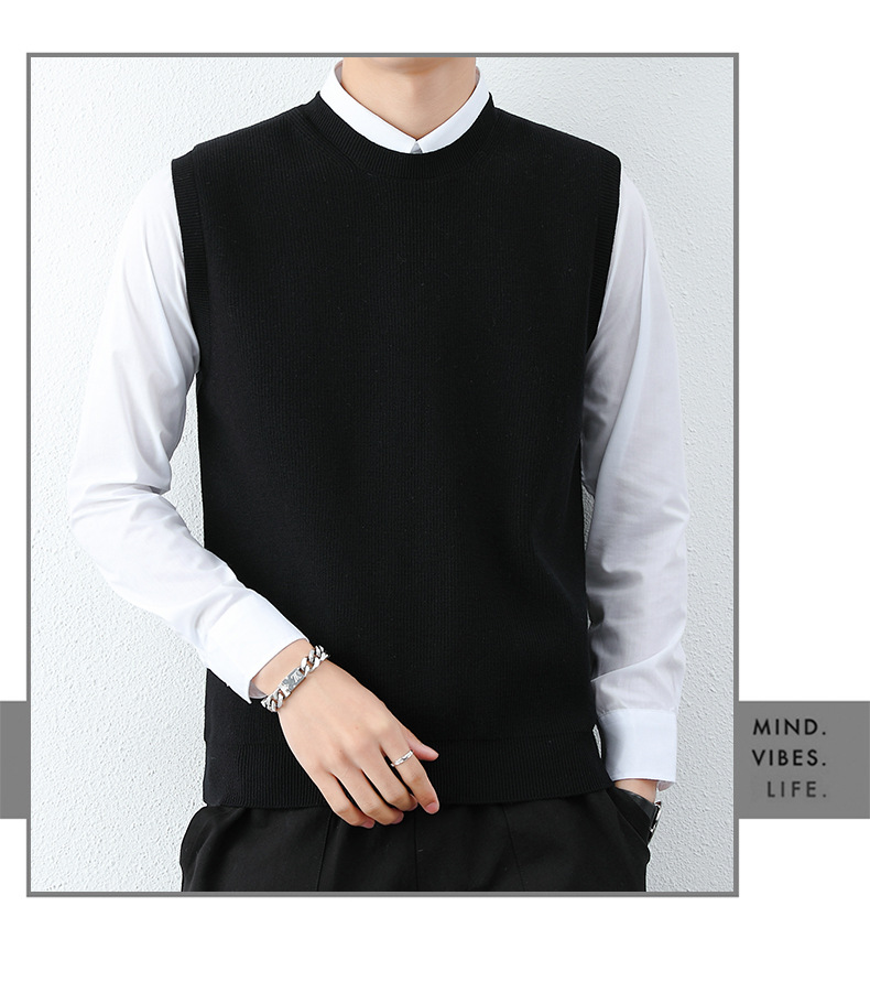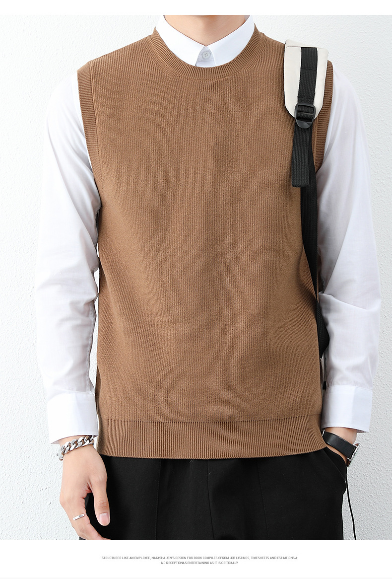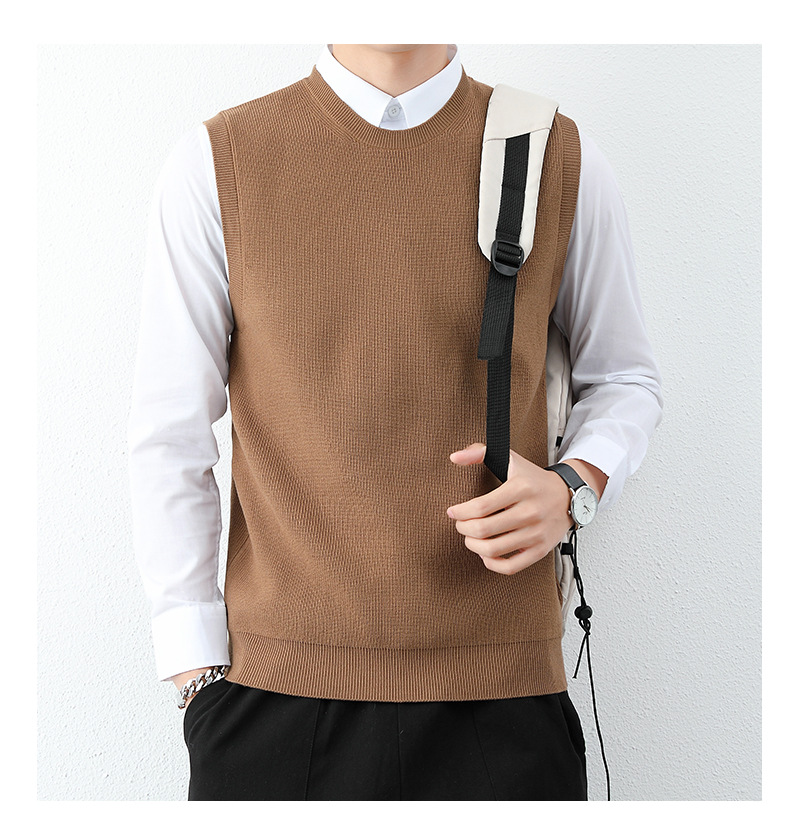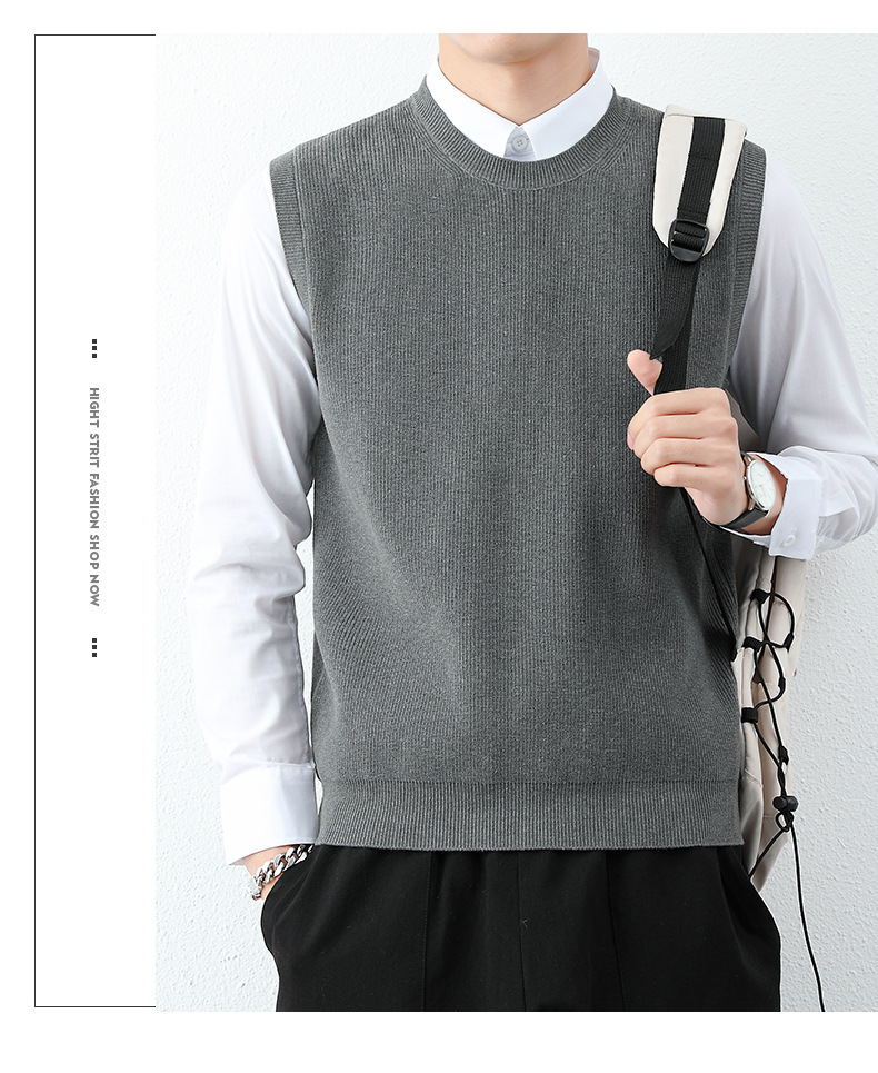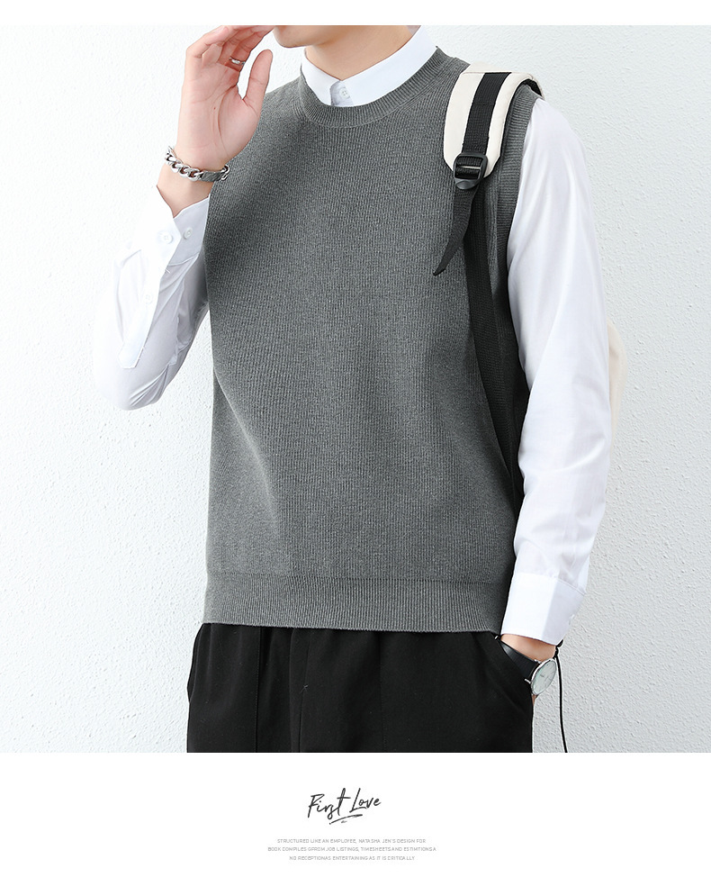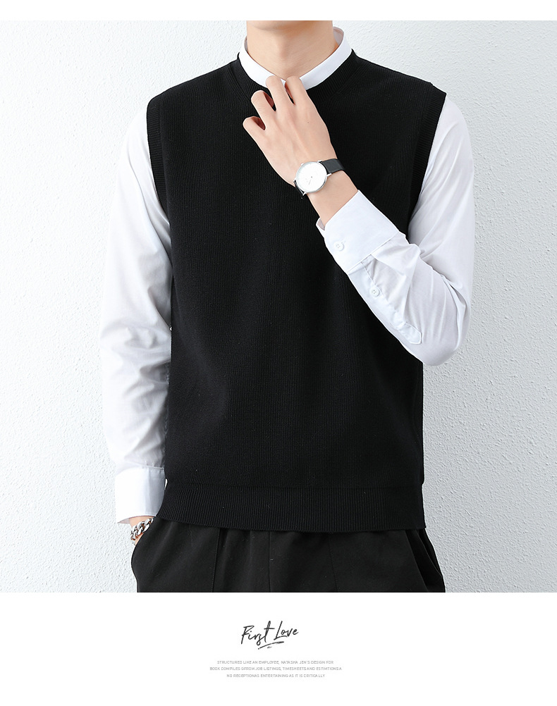 유럽과 미국의 간단한 문학 스타일 민소매 조끼 니트 탑 남성 가을 일본식 신선한 라운드 넥 조끼 스웨터 재킷