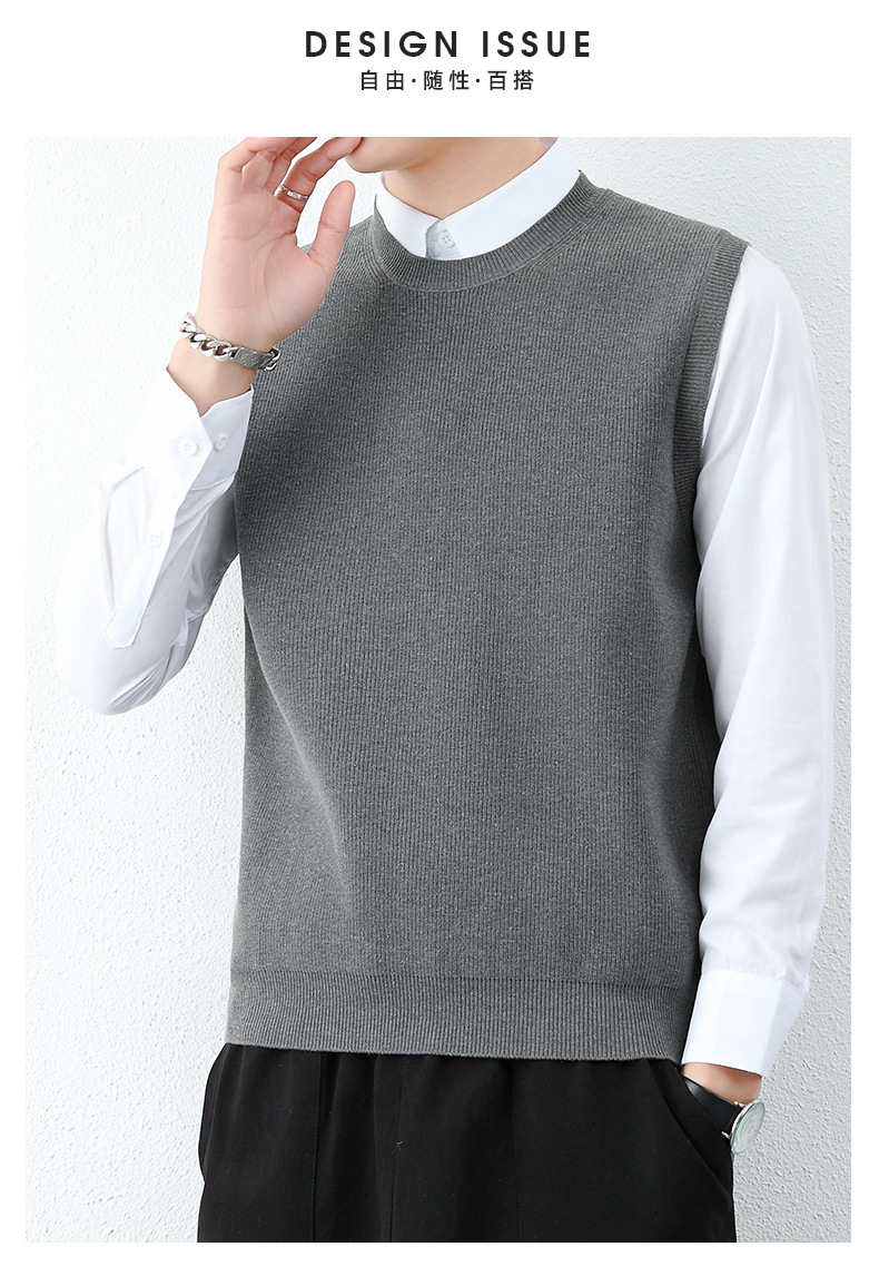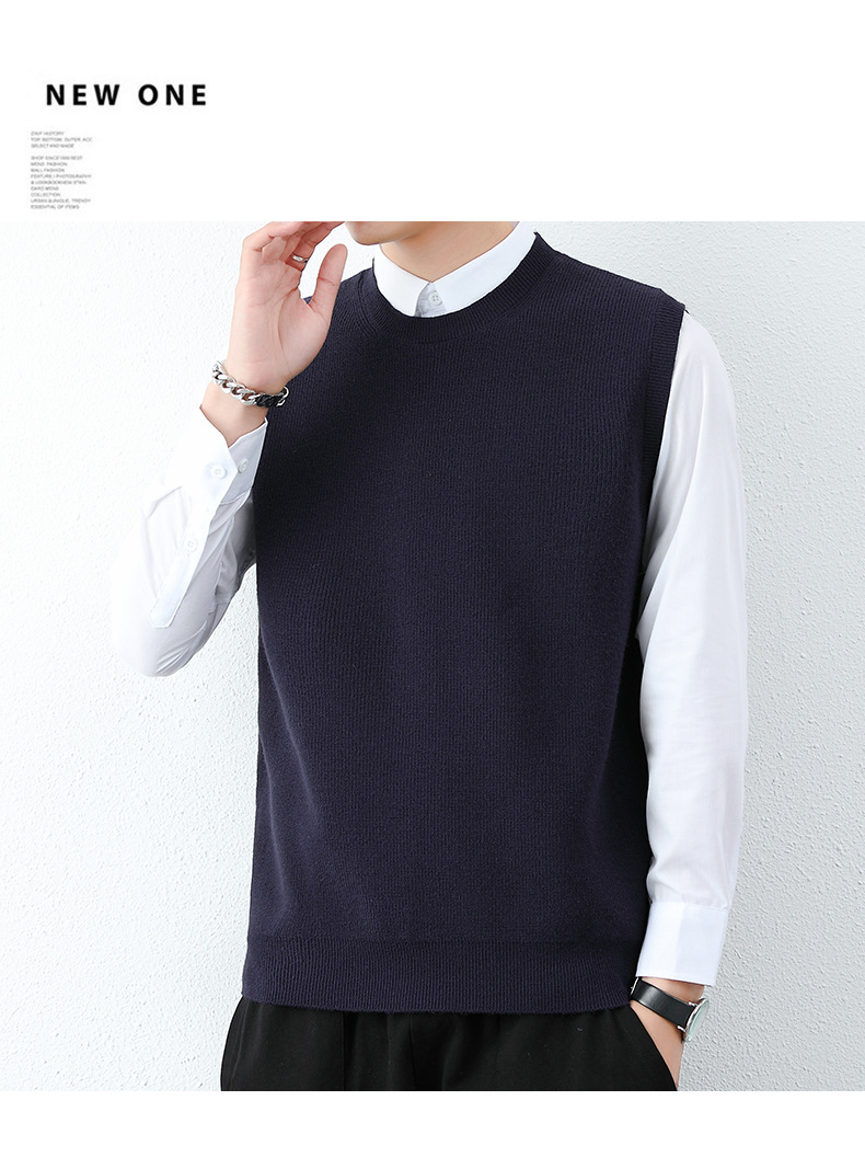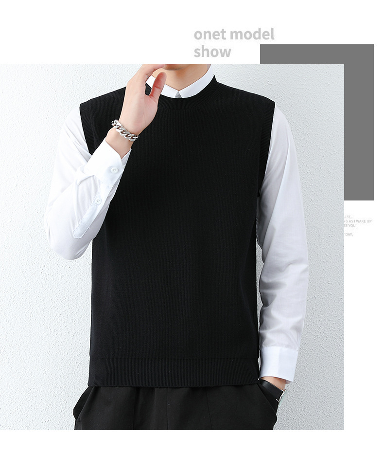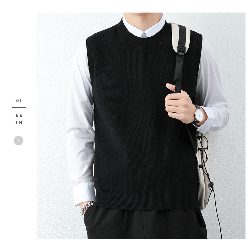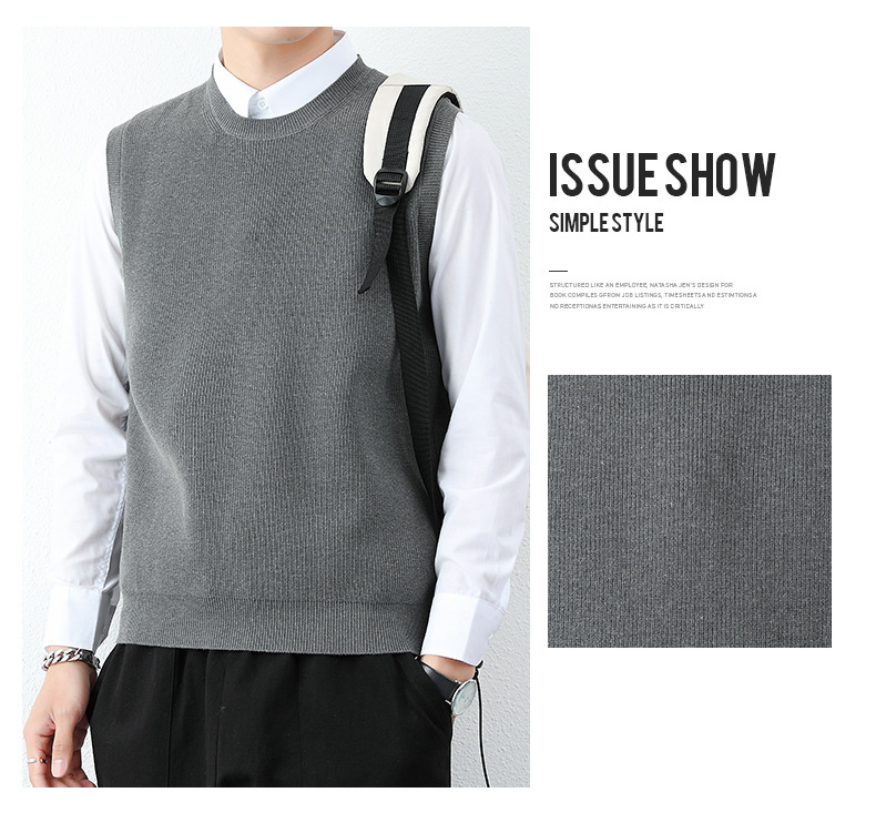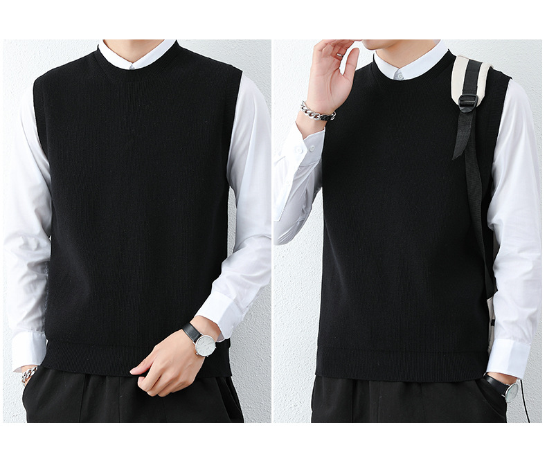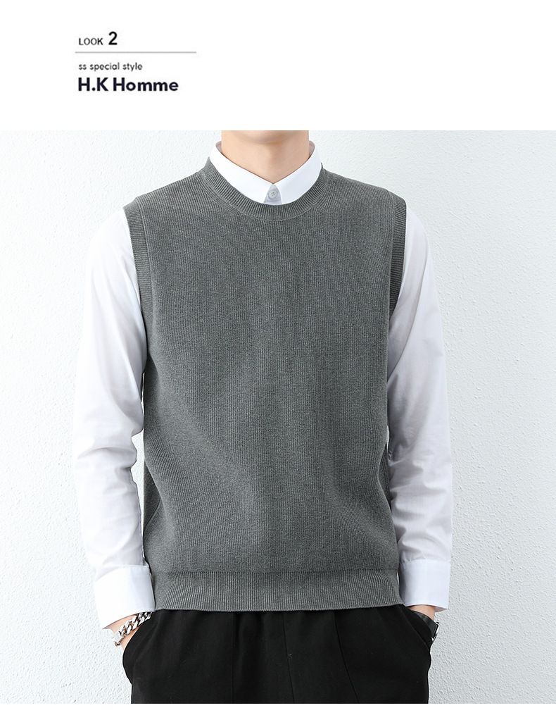 유럽과 미국의 간단한 문학 스타일 민소매 조끼 니트 탑 남성 가을 일본식 신선한 라운드 넥 조끼 스웨터 재킷