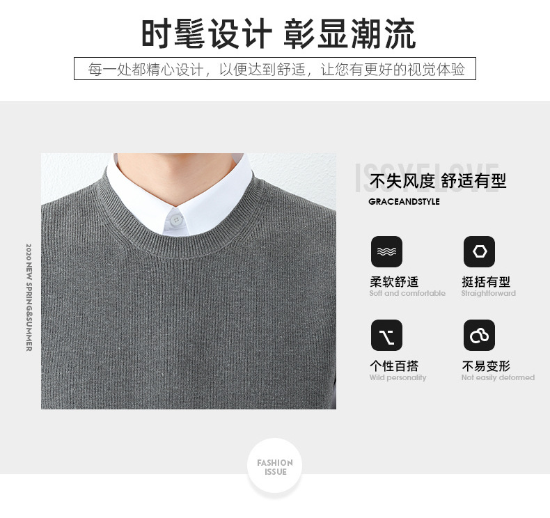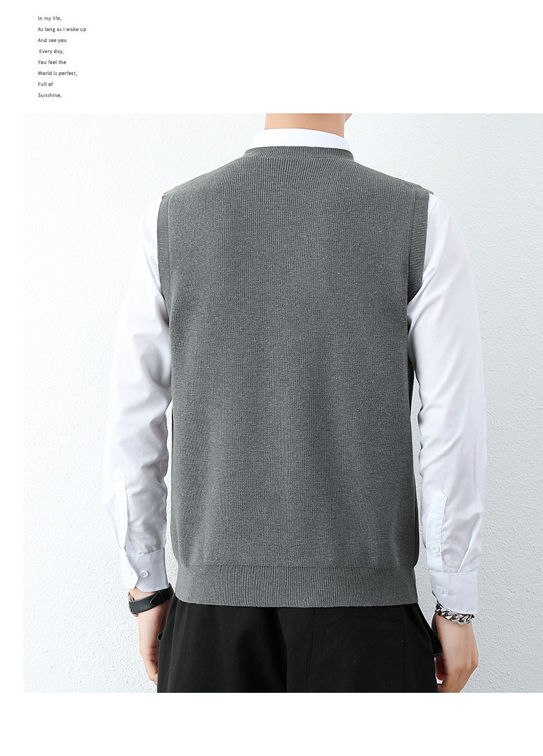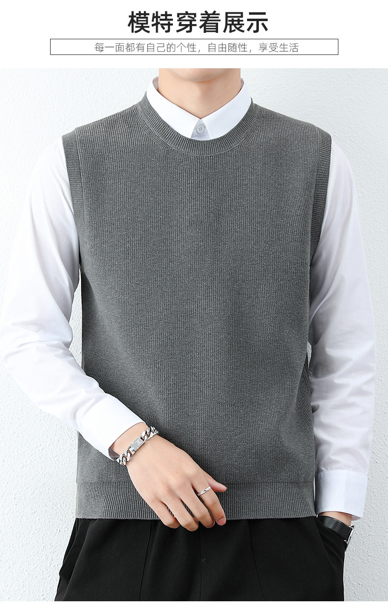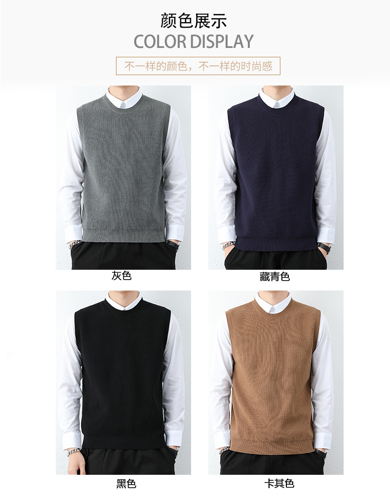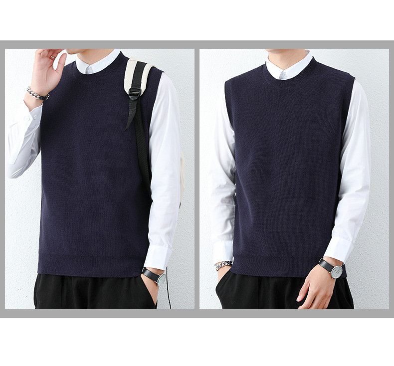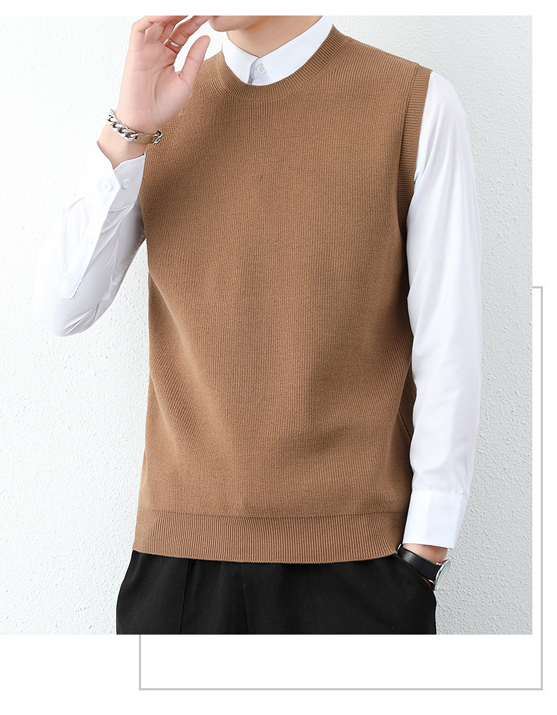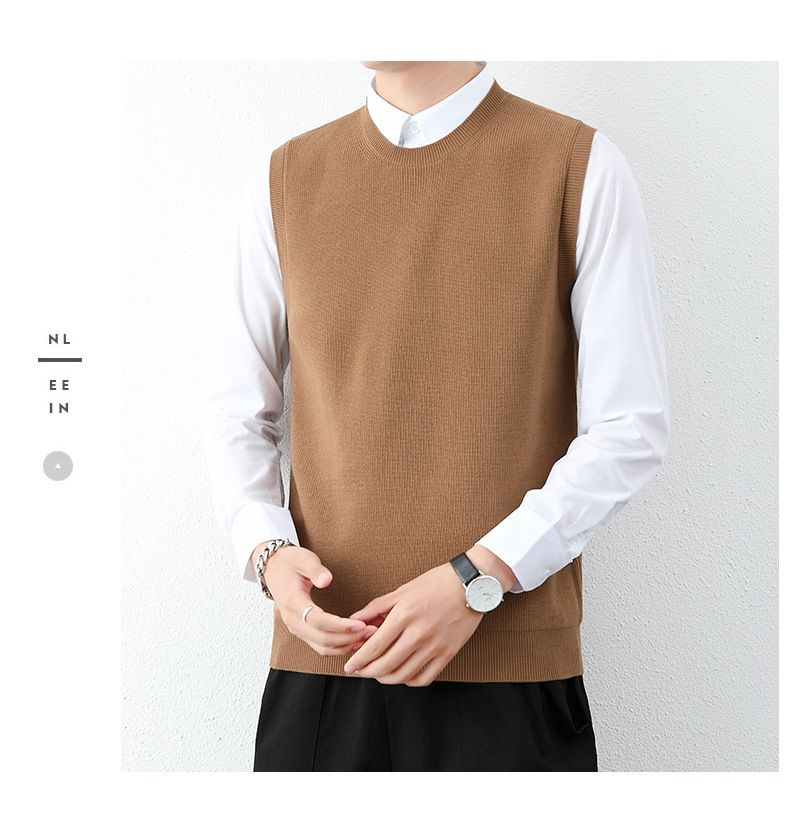 유럽과 미국의 간단한 문학 스타일 민소매 조끼 니트 탑 남성 가을 일본식 신선한 라운드 넥 조끼 스웨터 재킷