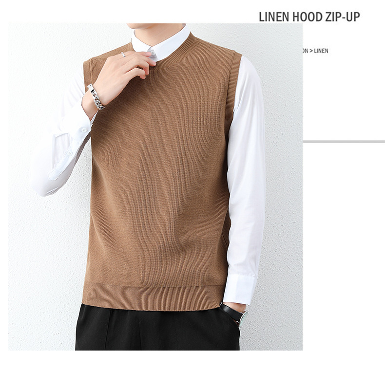 유럽과 미국의 간단한 문학 스타일 민소매 조끼 니트 탑 남성 가을 일본식 신선한 라운드 넥 조끼 스웨터 재킷스토어 가기