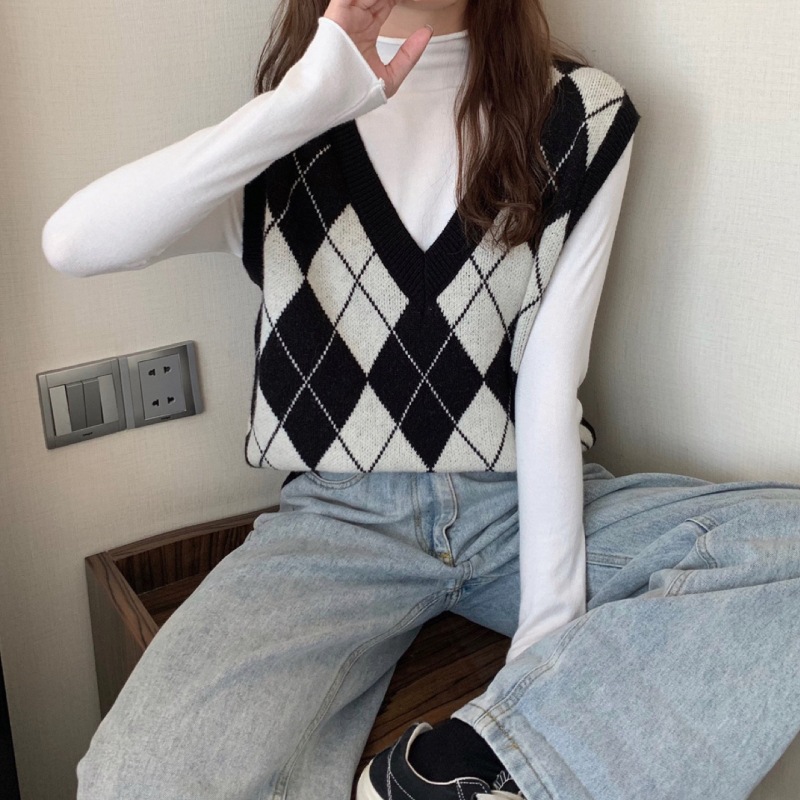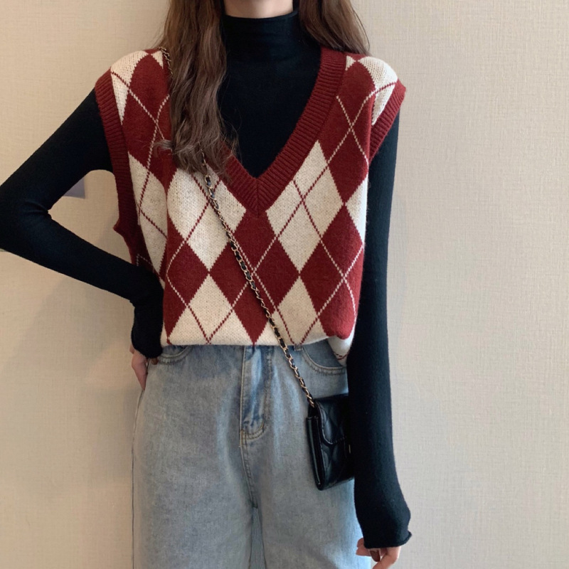 2025년 가을 겨울 여성용 레이스업 브이넥 니트 조끼 스웨터 레트로 스타일스토어 가기