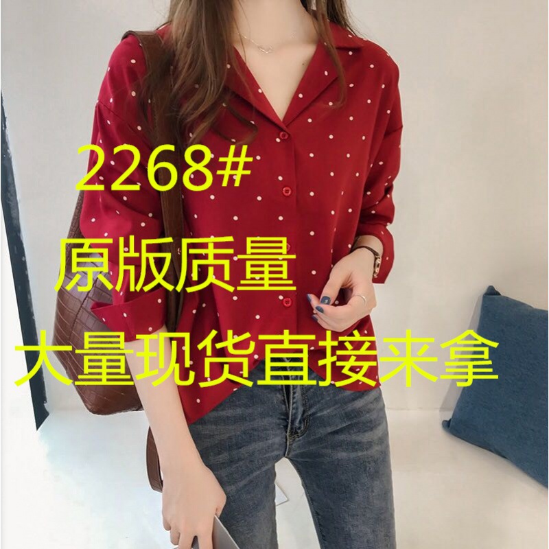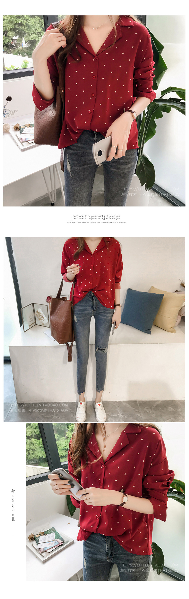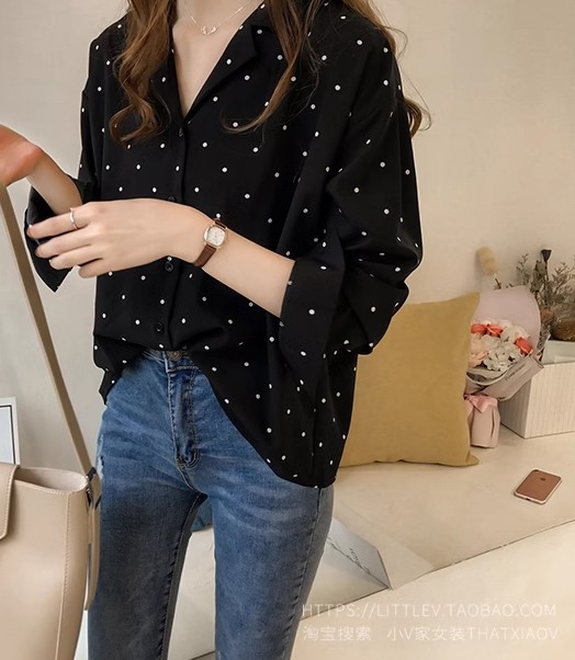 여자의 플러스 사이즈 새로운 홍콩 스타일 폴카 도트 프린트 쉬폰 셔츠 여자의 긴 소매 탑 한국 스타일 셔츠 베이스 셔츠스토어 가기