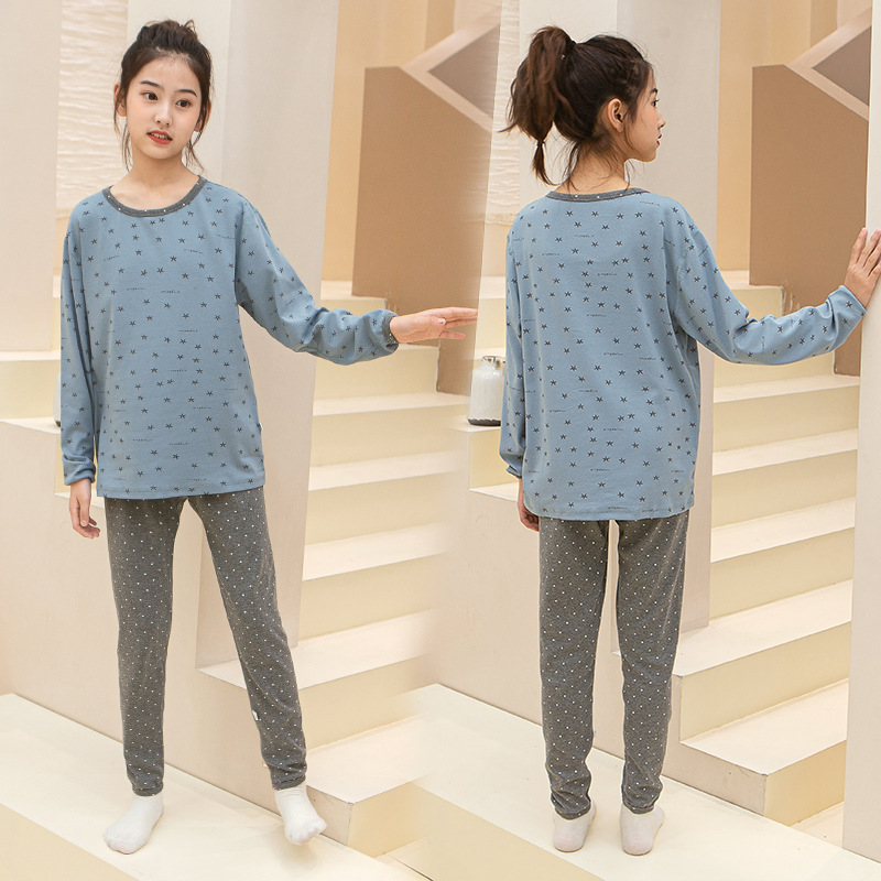 뚱뚱한 소녀들을 위한 속옷 세트, 가을옷, 가을바지, 루즈핏, 큰 사이즈 잠옷, 홈웨어, 보온형