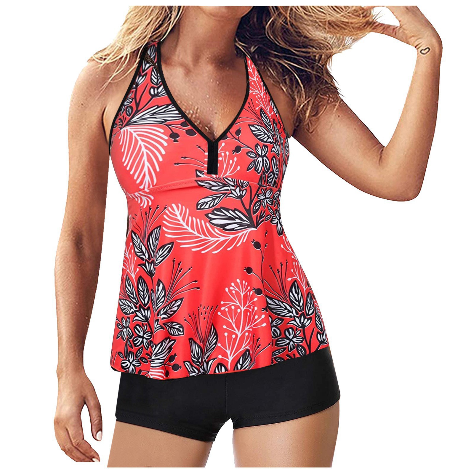 크로스 보더 새로운 유럽 및 미국 여성용 스플릿 수영복 프린트 스커트 배꼽 덮기 보수적 인 복서 Tankini 수영복스토어 가기