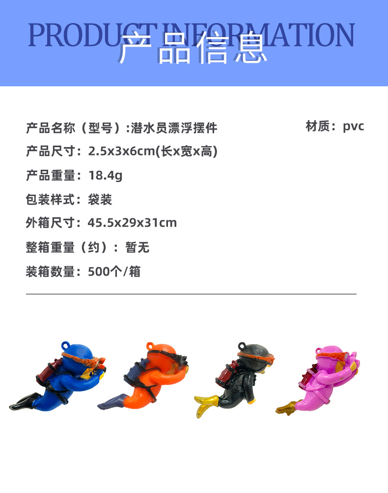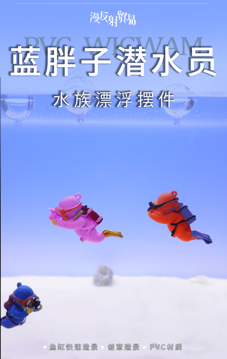 재고 도매 블루 오렌지 지방 다이버 수족관 장식 떠 다니는 물고기 탱크 조경 해양 장식품 frogman