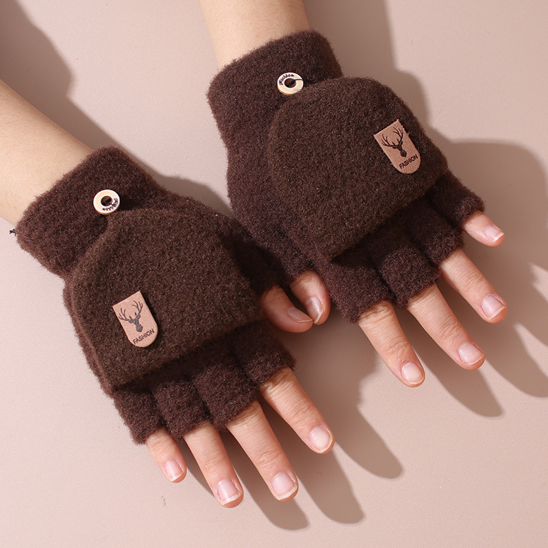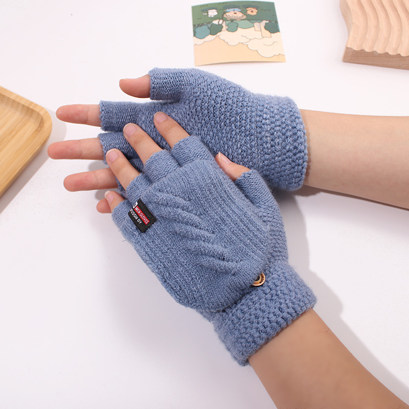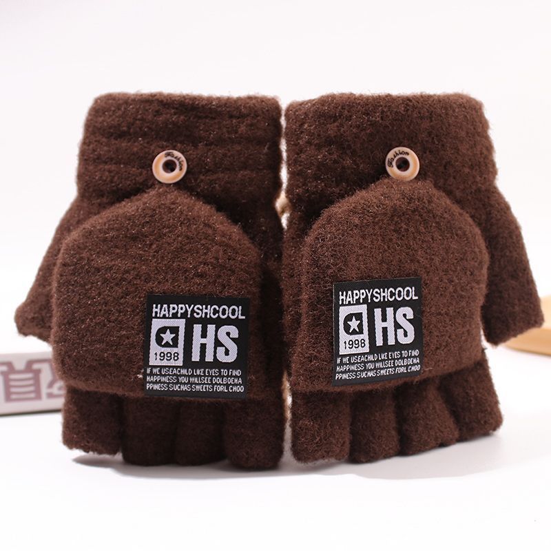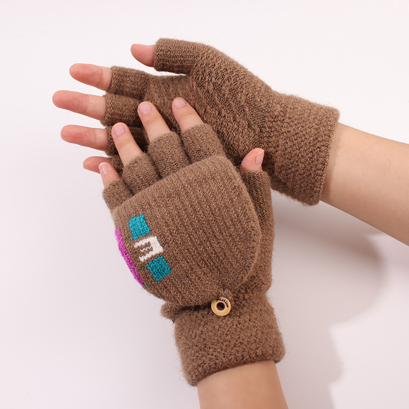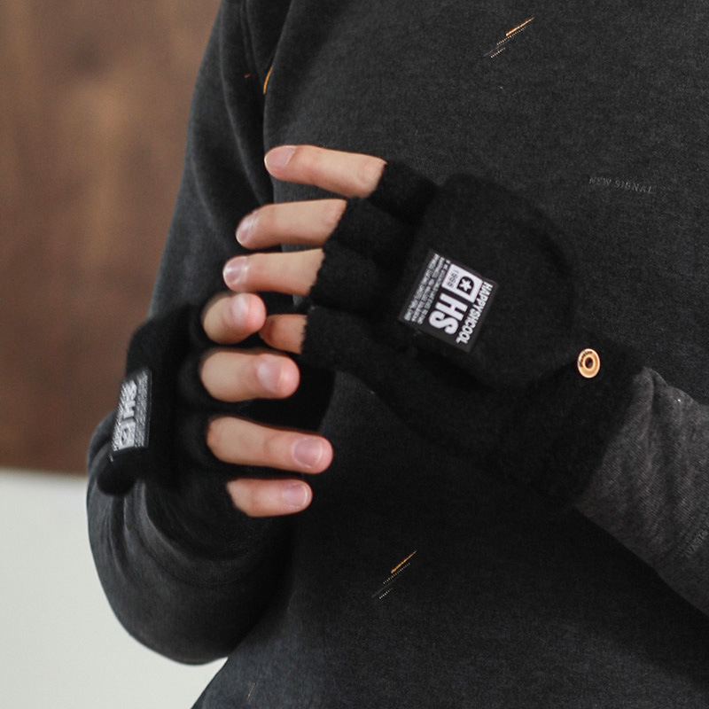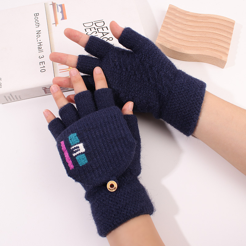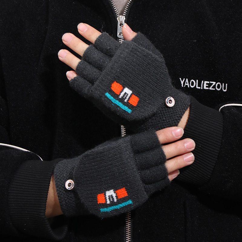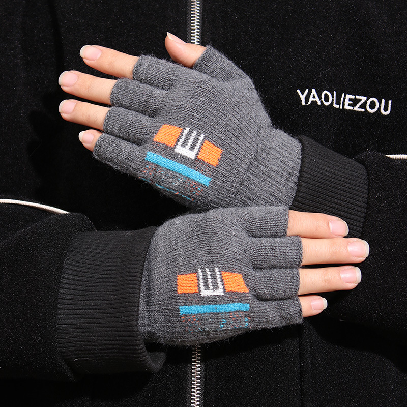 겨울 남자 학생 반 손가락 울 니트 플립 장갑 사이클링 자카드 두꺼운 따뜻한 쓰기스토어 가기