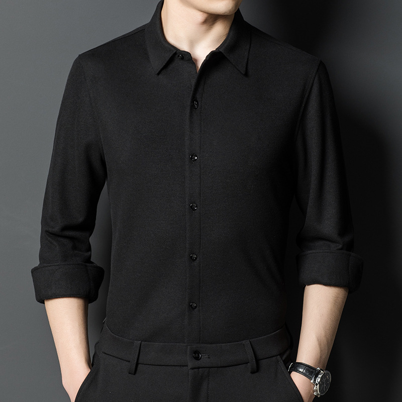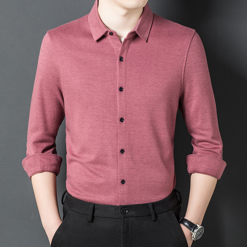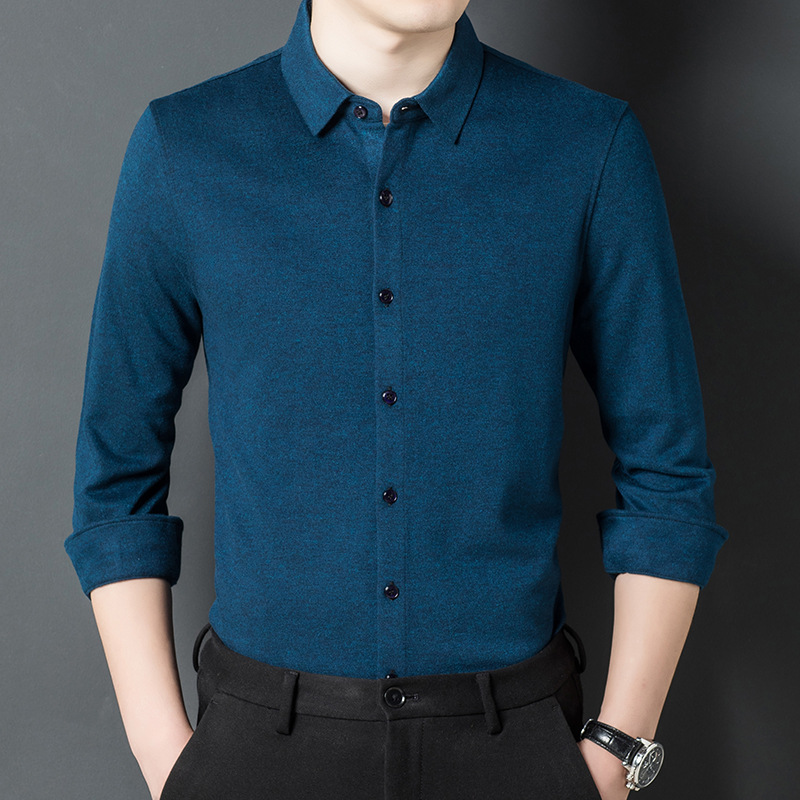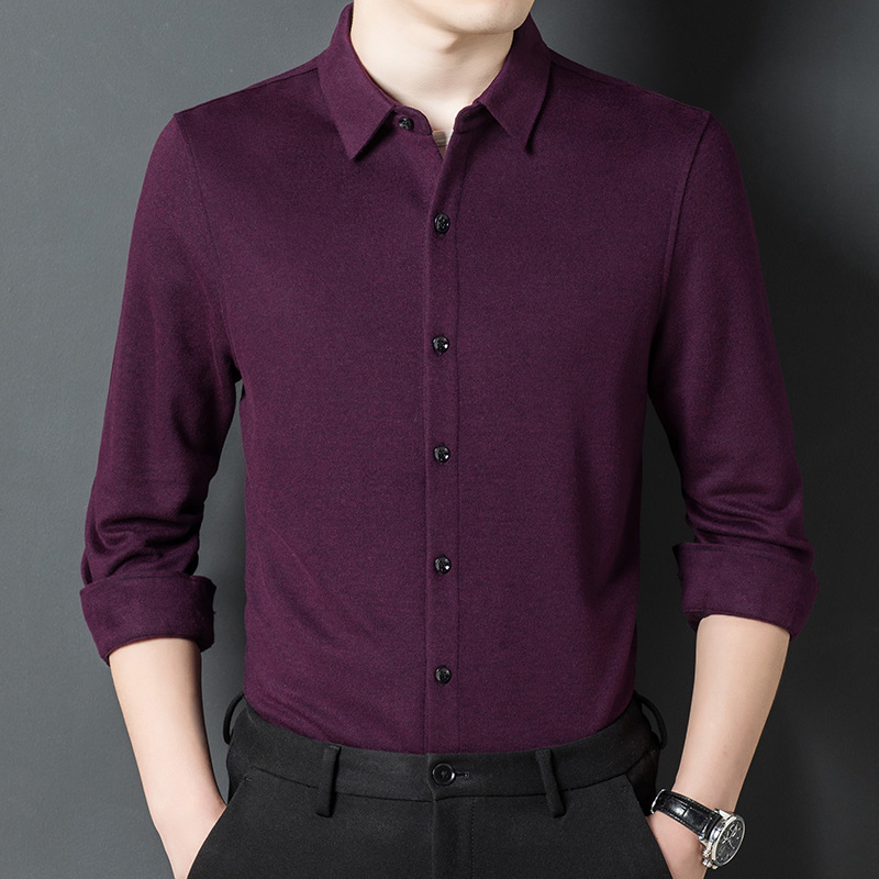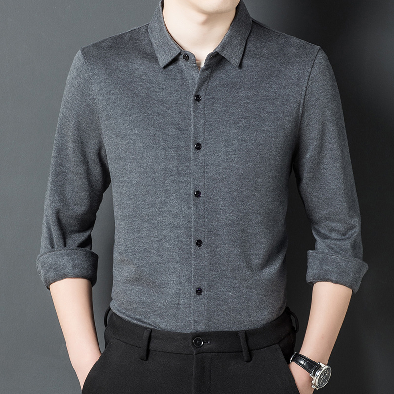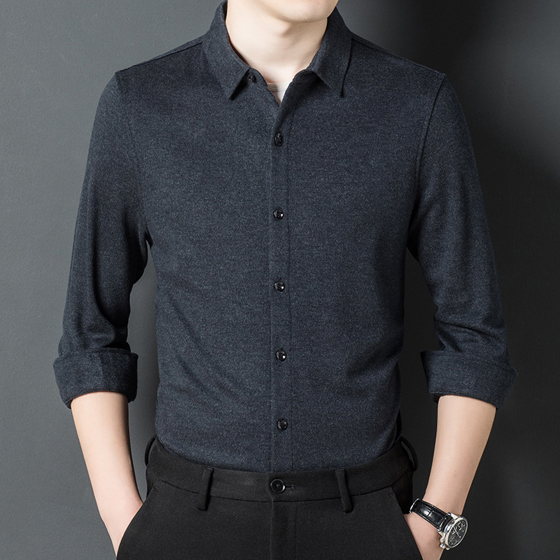 두꺼운 남성용 울 셔츠 2022 가을과 겨울 새로운 중년 비즈니스 캐주얼 단색 따뜻한 긴 소매 느슨한 셔츠