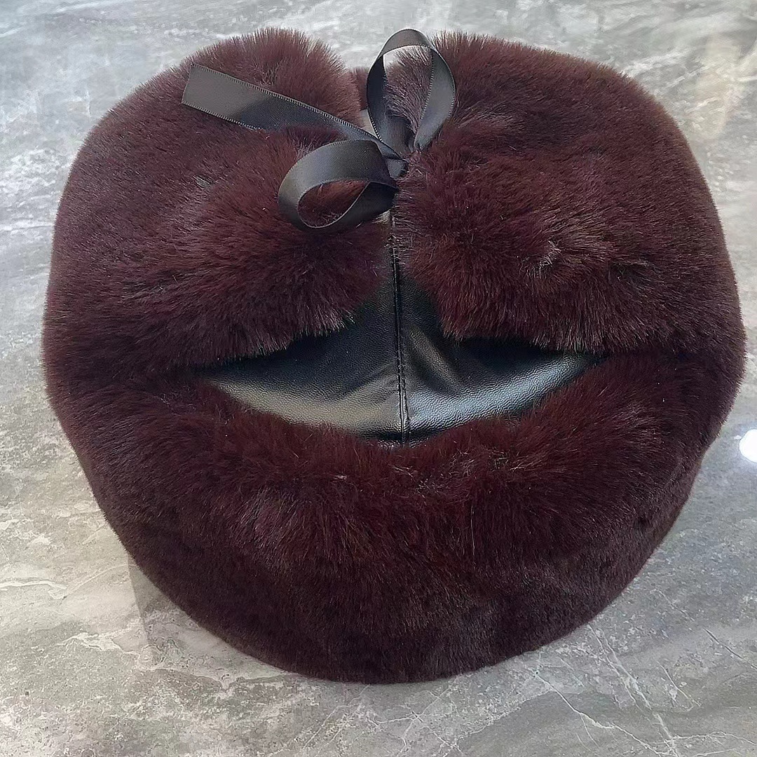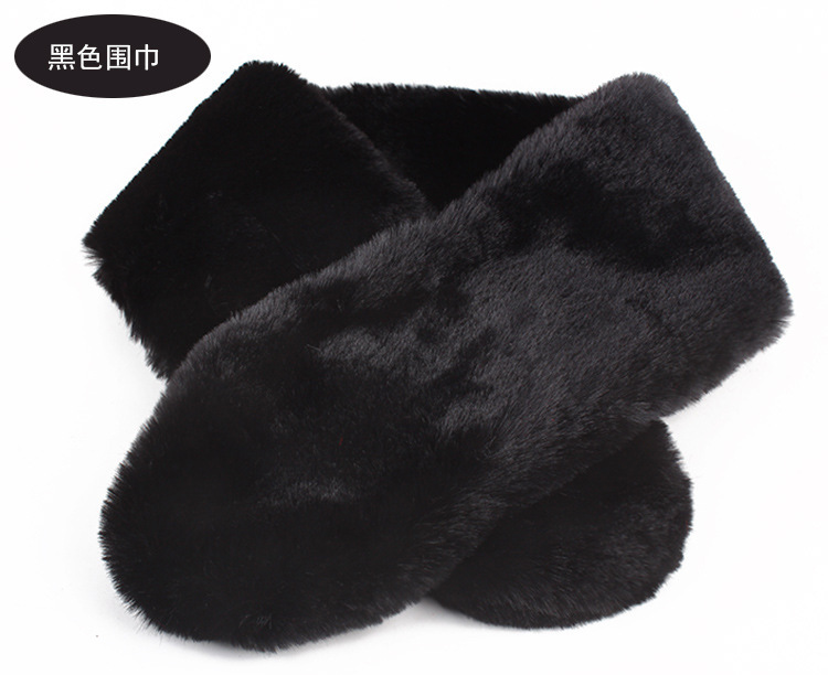 • 검정색 털실 가죽 레이펑 모자 + 검정색 머플러