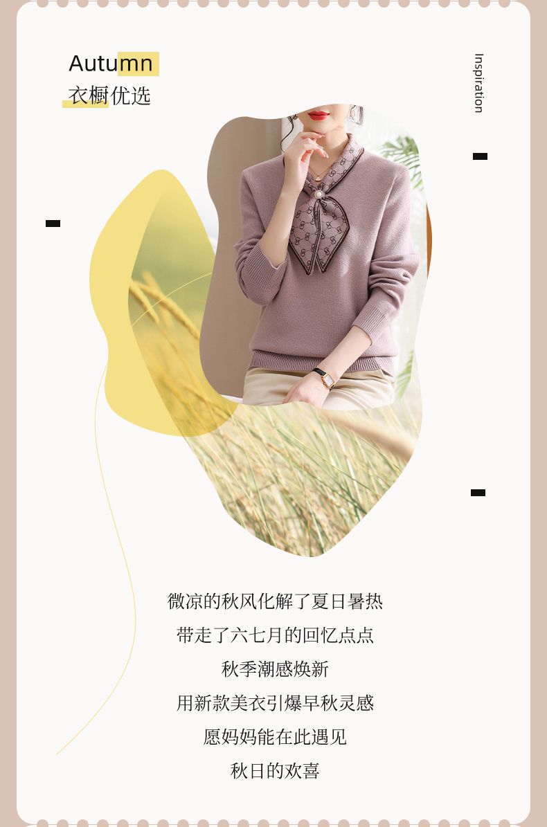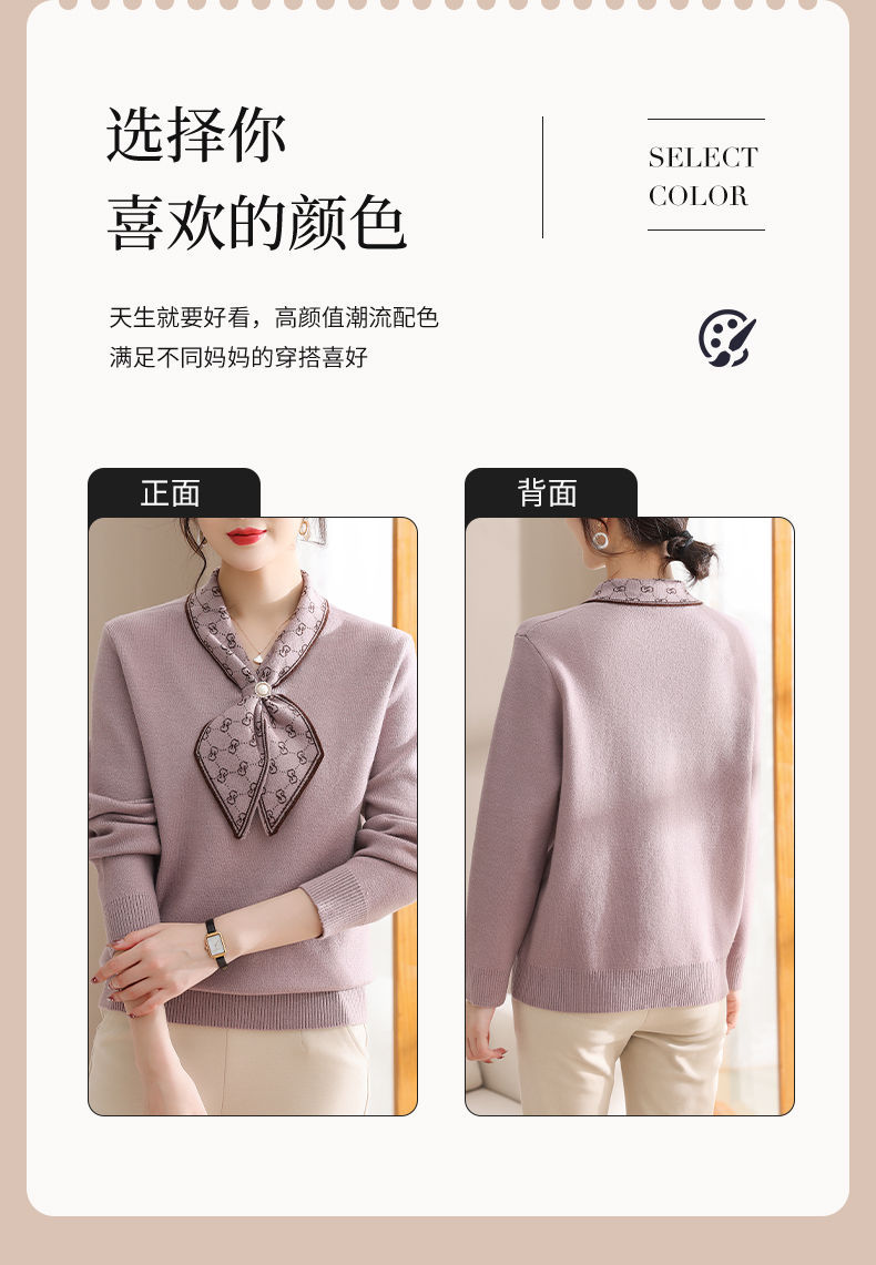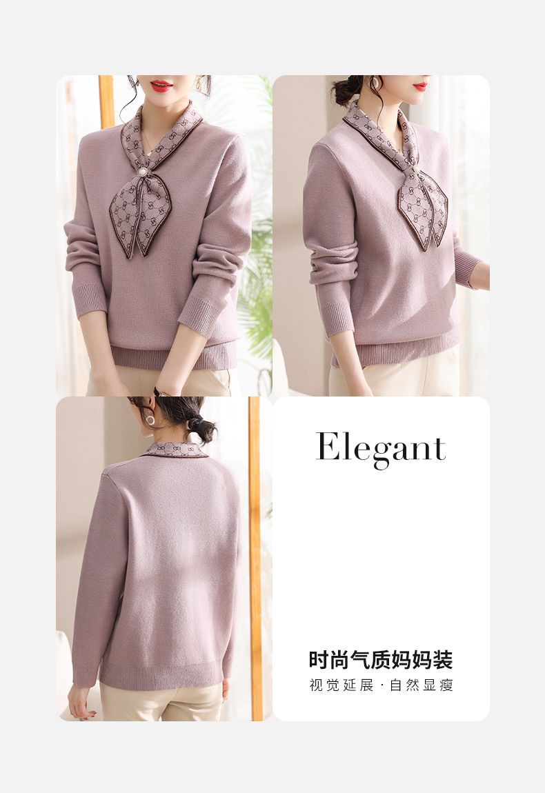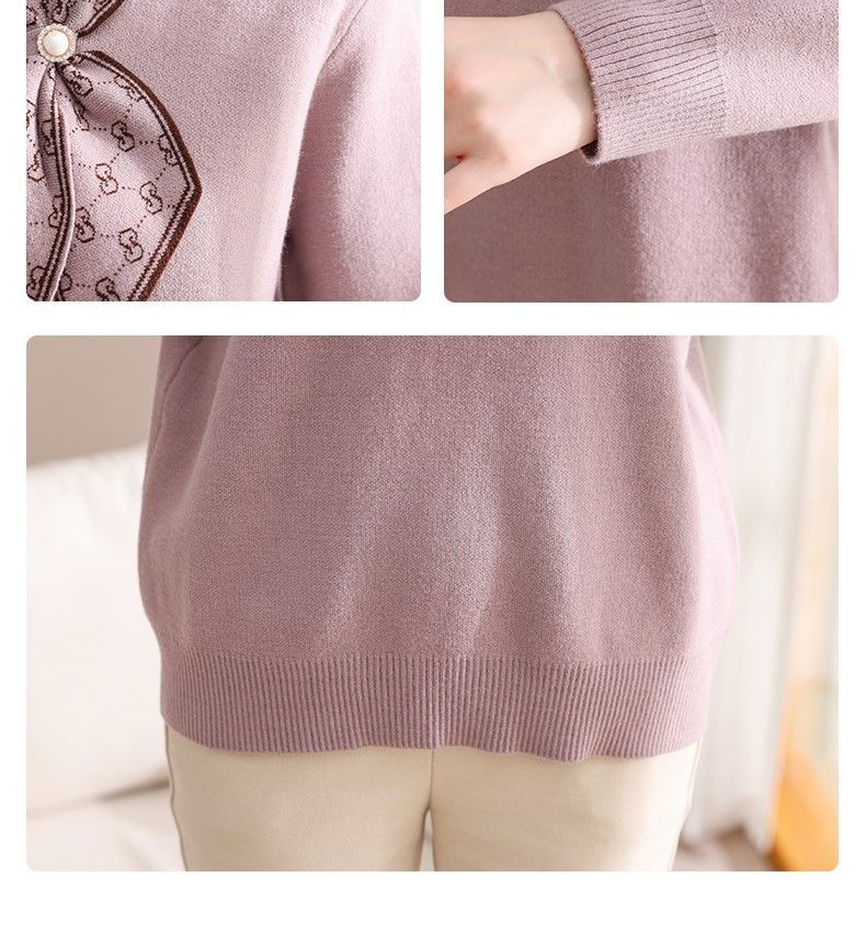 엄마의 가을 니트 셔츠 세련된 스웨터 중년 및 노인 여성의 봄과 가을 새로운 기본 셔츠 가을 긴팔 탑스토어 가기