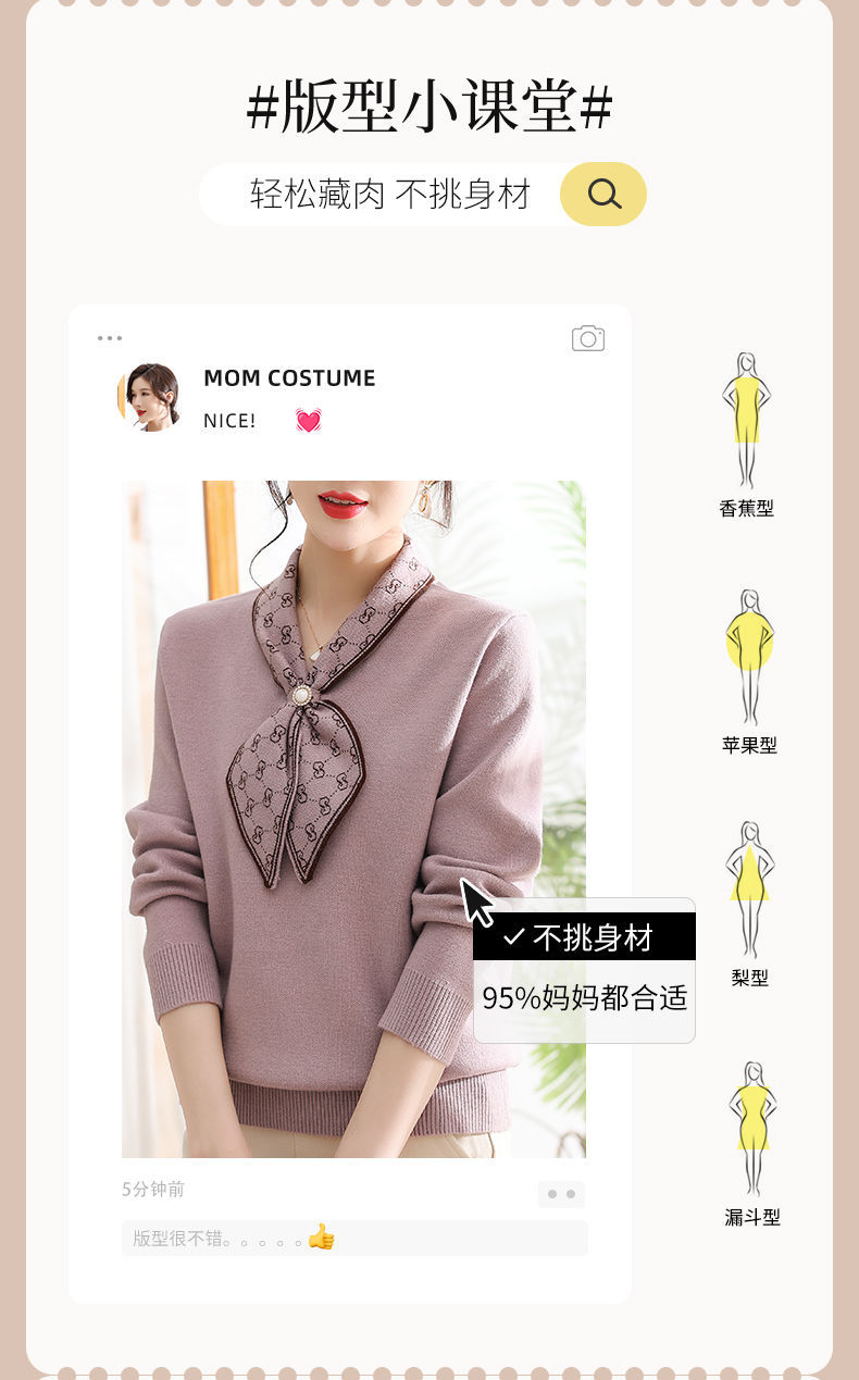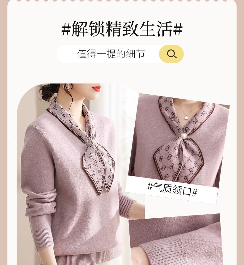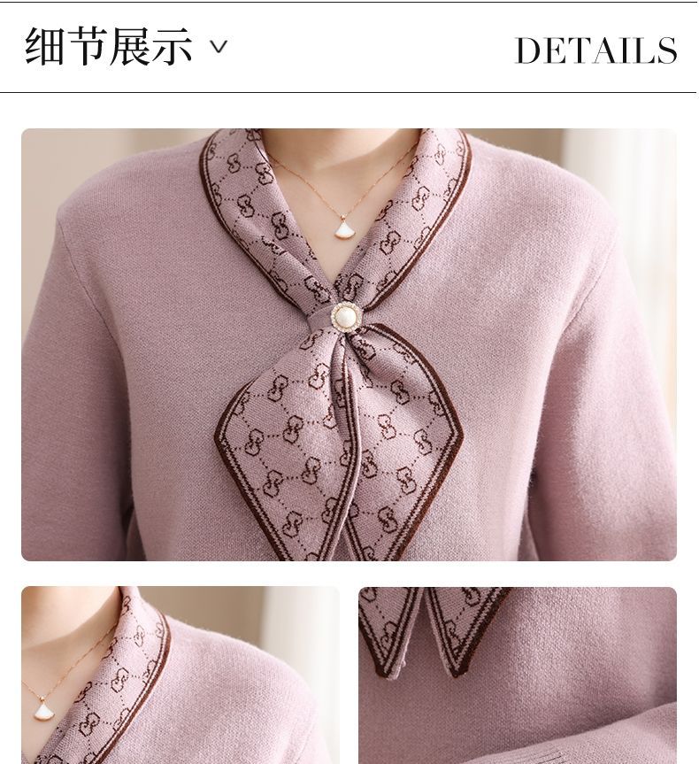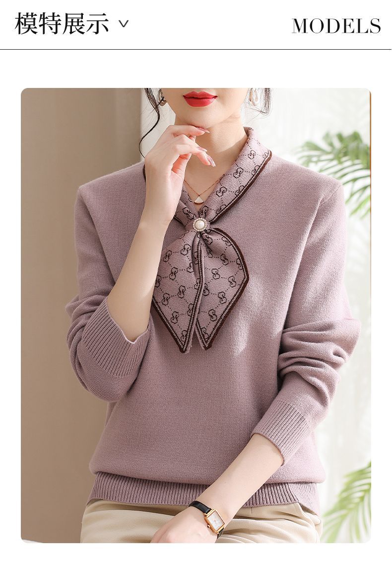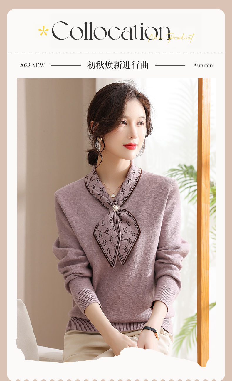 엄마의 가을 니트 셔츠 세련된 스웨터 중년 및 노인 여성의 봄과 가을 새로운 기본 셔츠 가을 긴팔 탑스토어 가기