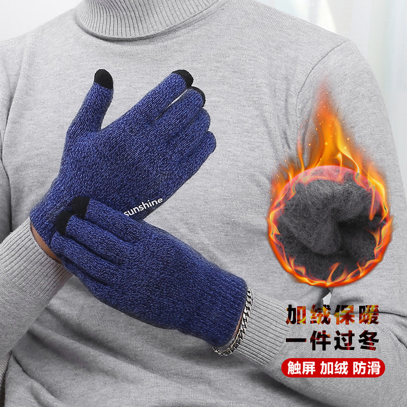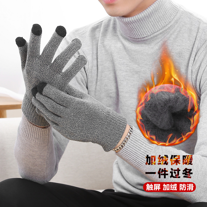 10 쌍 무료 배송 따뜻한 니트 터치 스크린 장갑 남성용 기모 두꺼운 미끄럼 방지 겨울 크로스 보더 야외 울스토어 가기