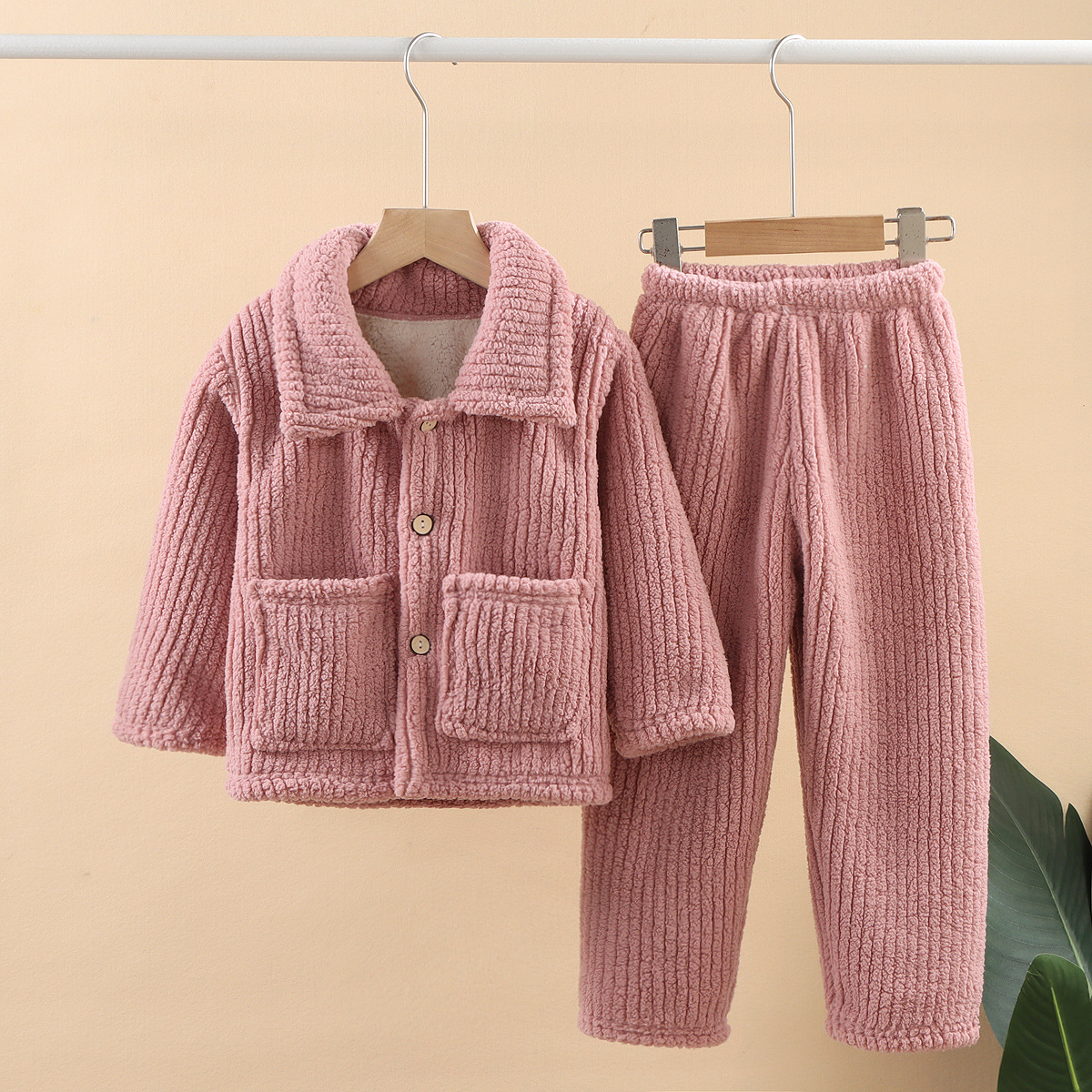 가을과 겨울 어린이 산호 양털 파자마 소녀 세트 어린이 플란넬 아기 소녀의 긴팔 홈웨어