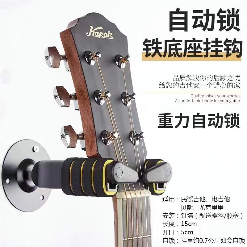기타 후크 랙 벽 슬롯 플레이트 전기 기타 브래킷 벽 단단한 나무 기타 걸이 자동 잠금 후크 행거스토어 가기