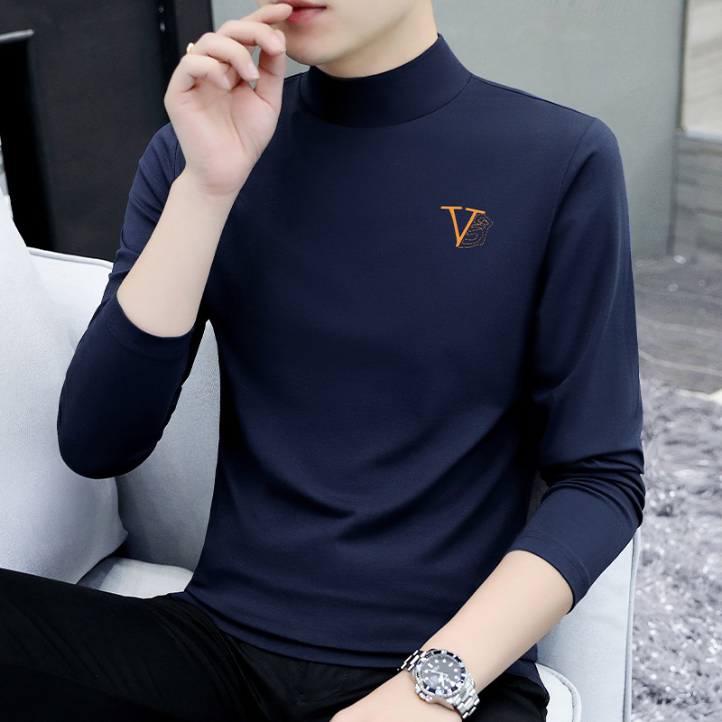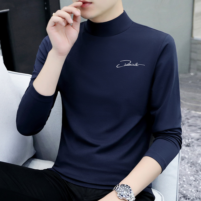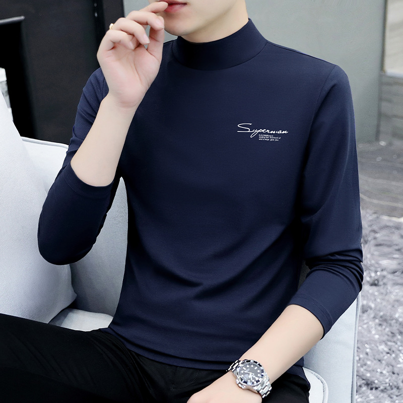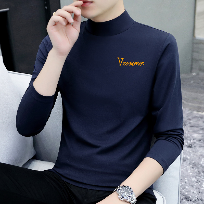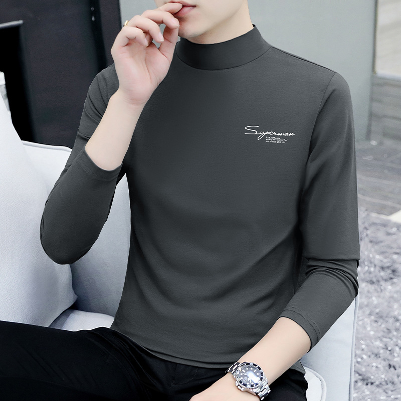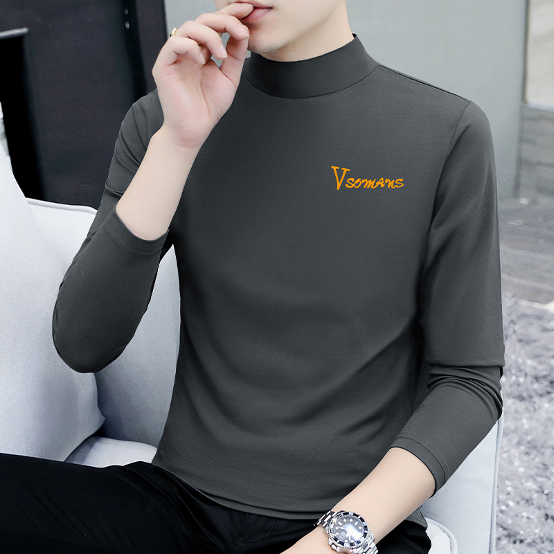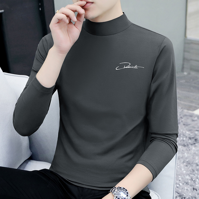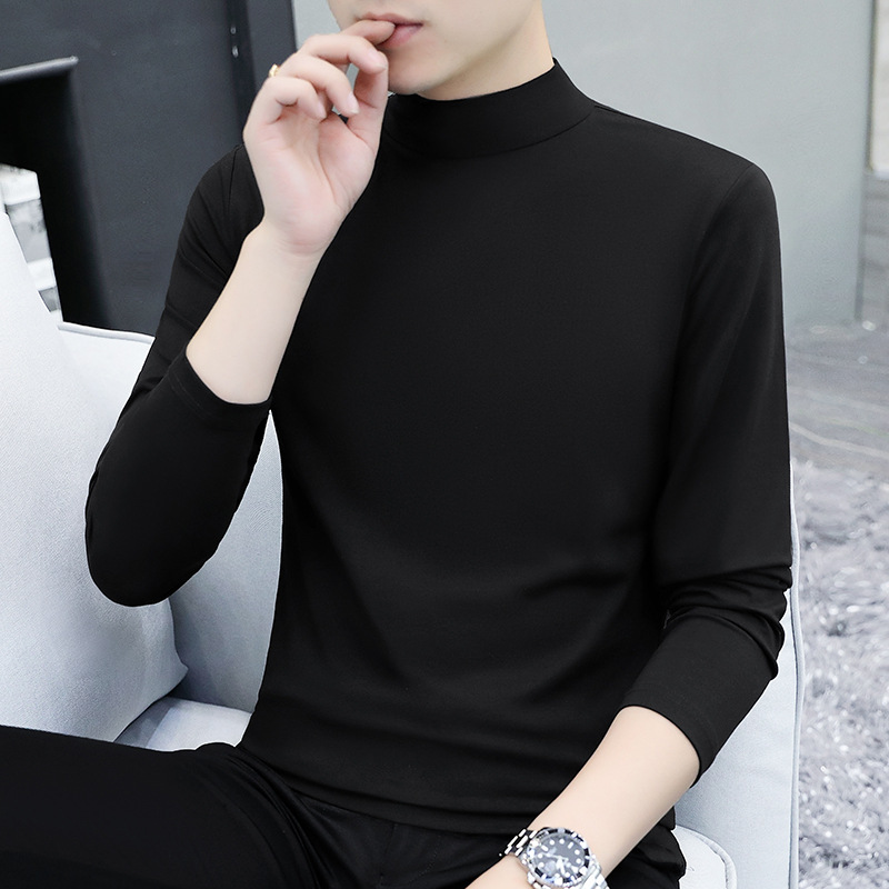 남성용 긴팔 티셔츠, 엠보싱 하프 터틀넥, 남성용 베이스 레이어, 신축성 있는 슬림핏 캐주얼 남성용 티셔츠 탑 도매스토어 가기