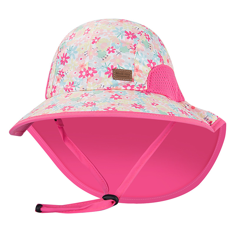 • 핑크 꽃 어린이 큰 챙 모자