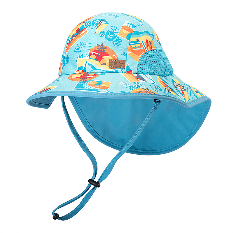 국경 간 수출 여름 캠핑 야외 썬크림 디지털 프린팅 멀티 컬러 UPF50 + 어린이 모자 로고 숄 모자스토어 가기