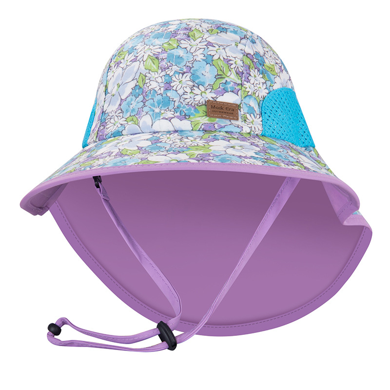 • 보라색 꽃 어린이 큰 챙 모자