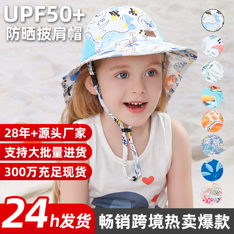 국경 간 수출 여름 캠핑 야외 썬크림 디지털 프린팅 멀티 컬러 UPF50 + 어린이 모자 로고 숄 모자