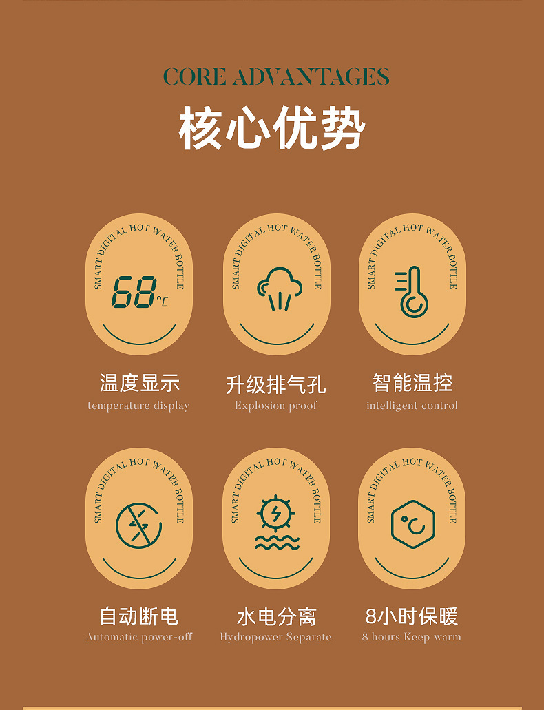 • 사쿠라 파우더: 자동 배기 디지털 디스플레이 온수 가방 + 스마트 충전기