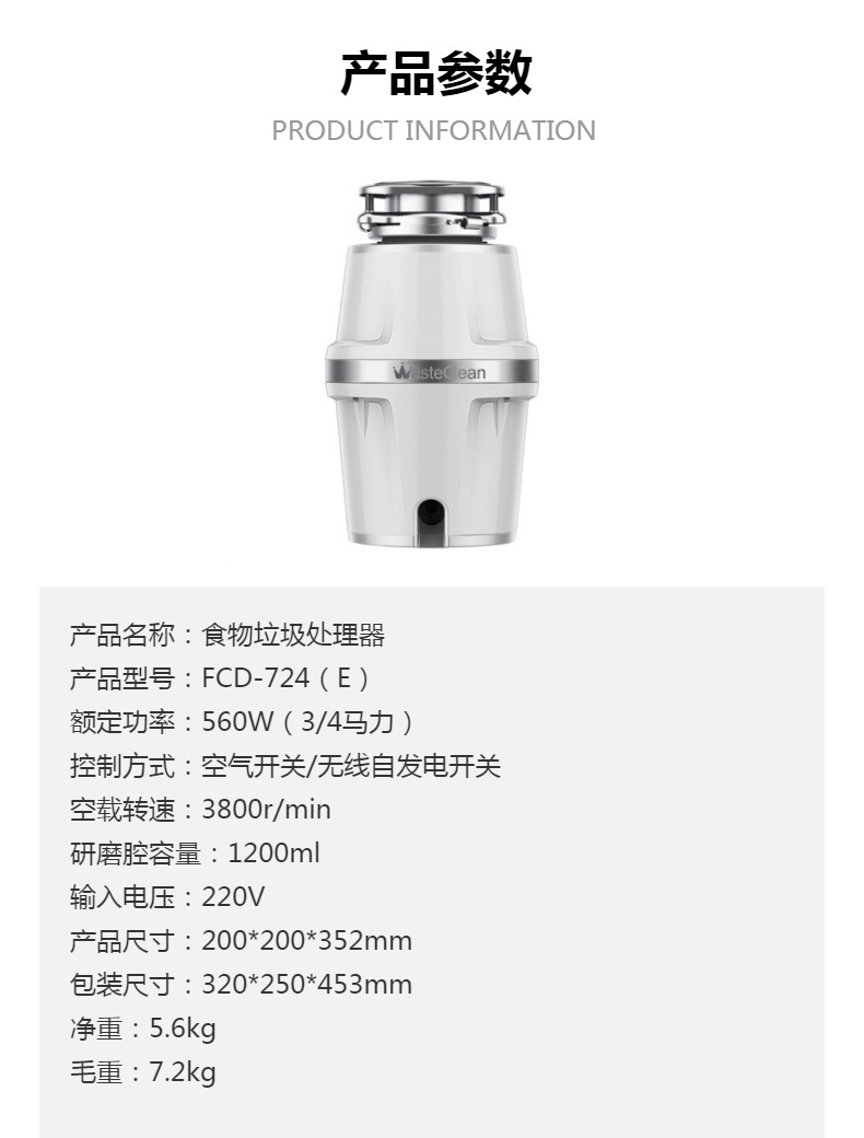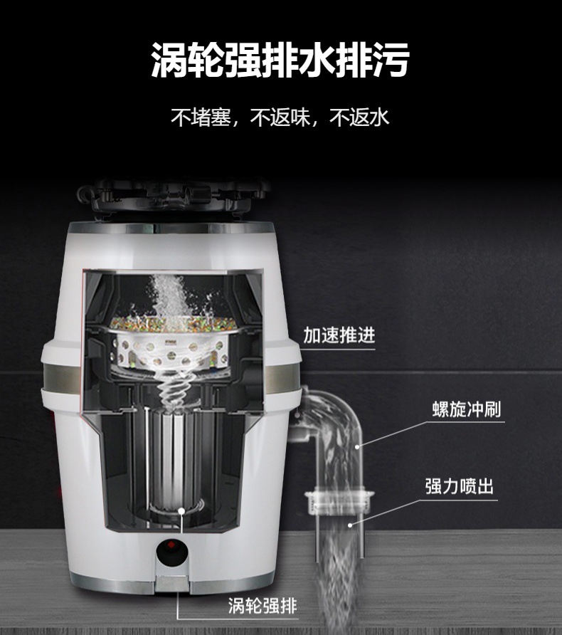 독자 특허 가정용 주방 음식물 쓰레기 처리기 주방 싱크대 분쇄기 560W 터보차저 배수