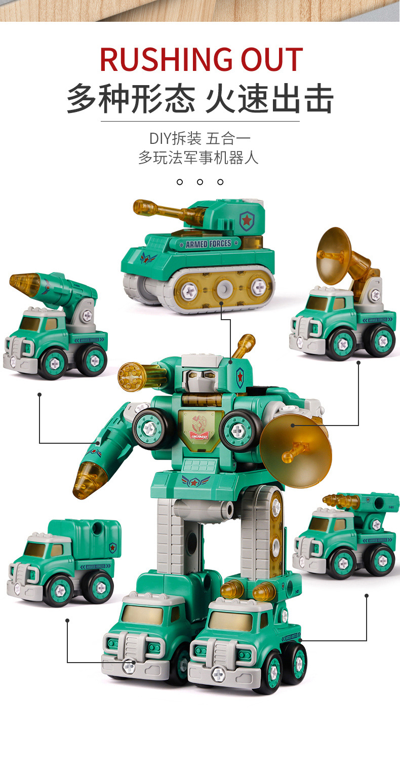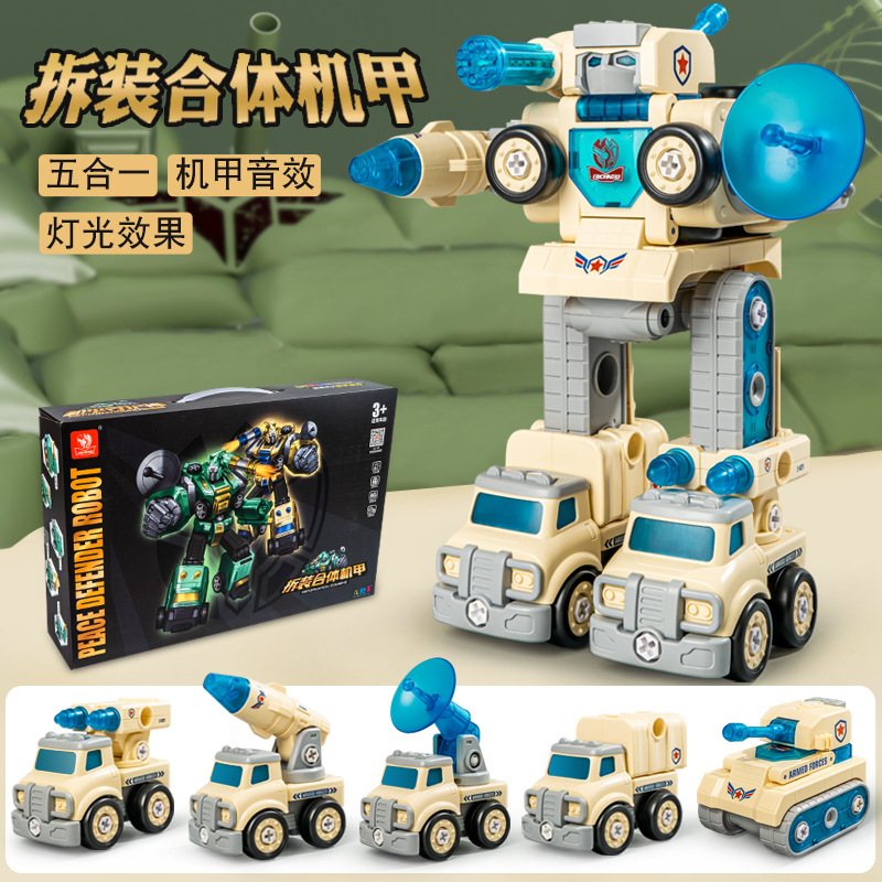 어린이 5 대 1 분해 및 조립 변형 자동차 엔지니어링 자동차 장난감 소년 굴착 로봇 세트 모델