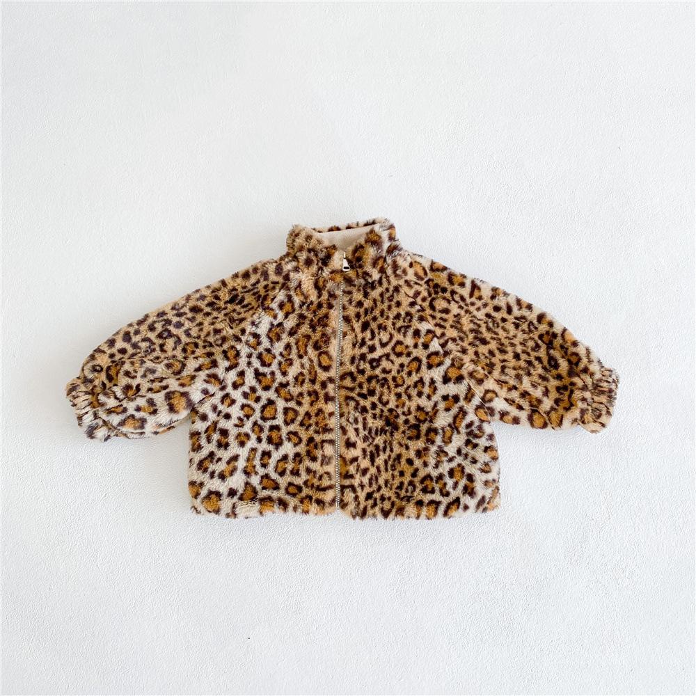 아동복 한국 아동 코트 2023 가을과 겨울 소년과 소녀를위한 레오파드 무늬 암소 양모 스웨터스토어 가기