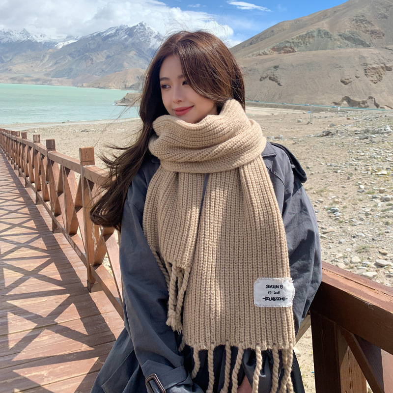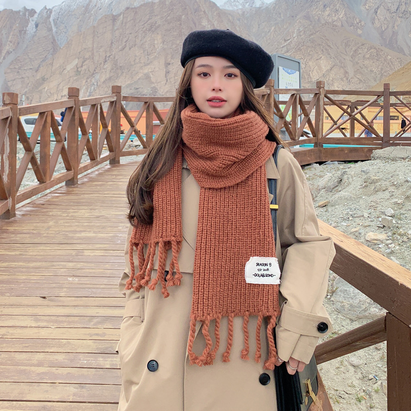 스카프 여성용 새로운 거친 울 니트 스카프 여성용 겨울 한국식 모든 매치 따뜻한 일본 학생 단색 스카프 트렌디스토어 가기