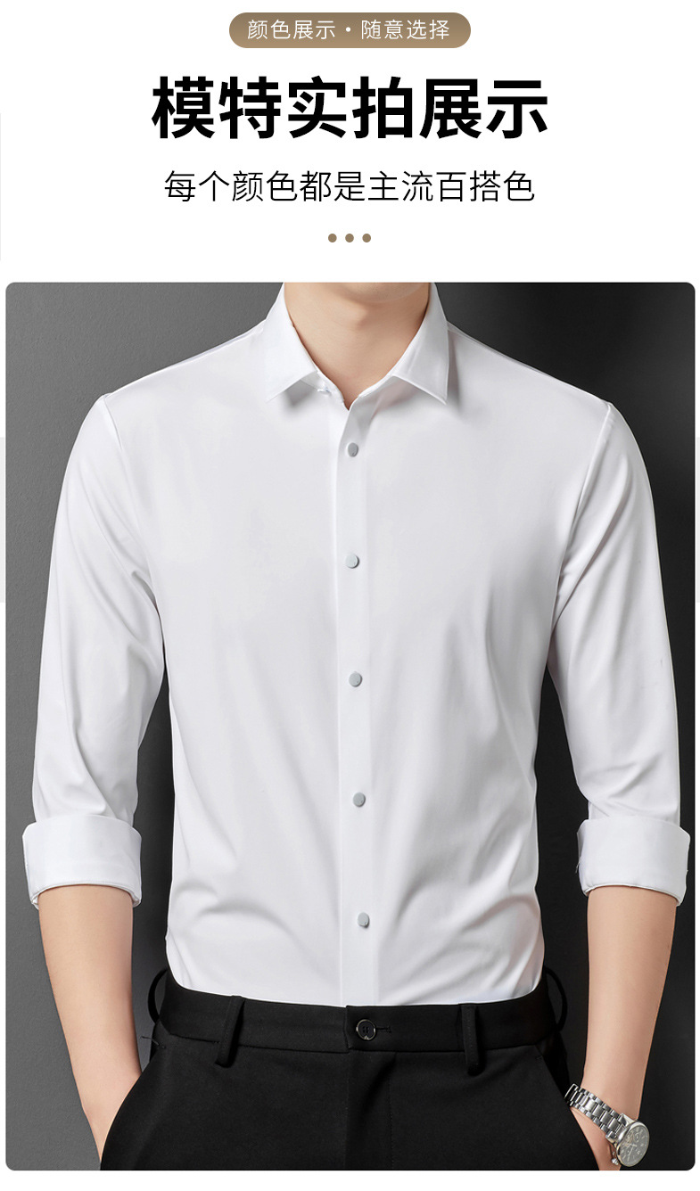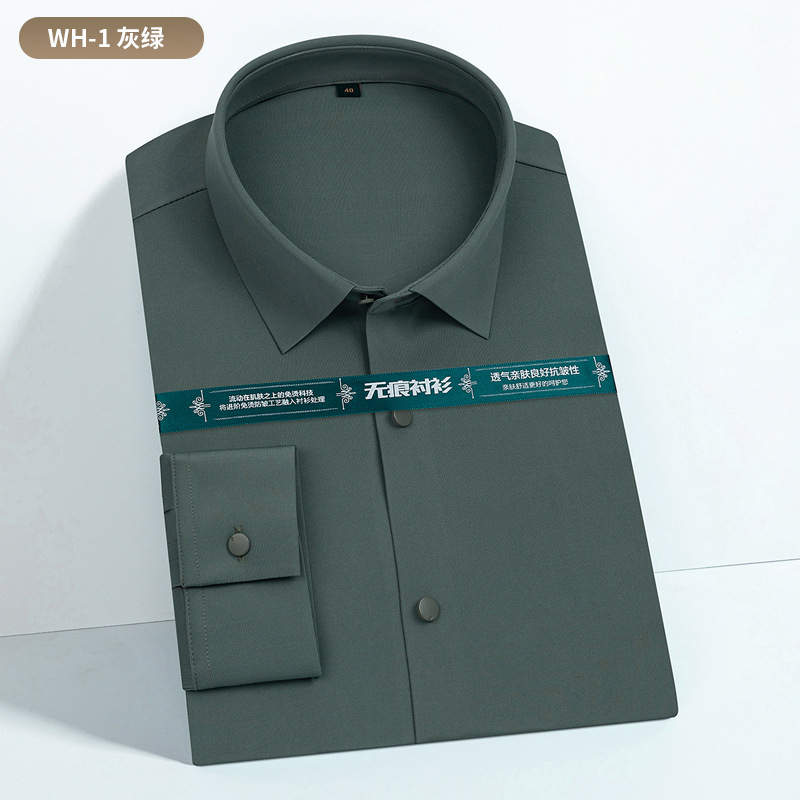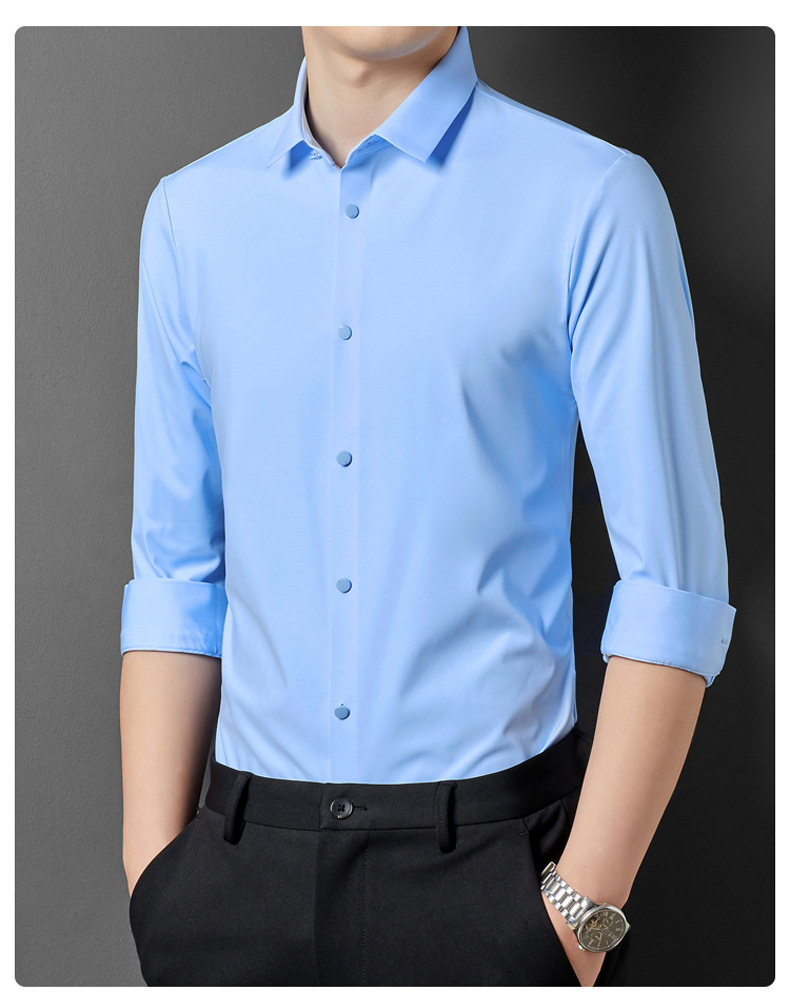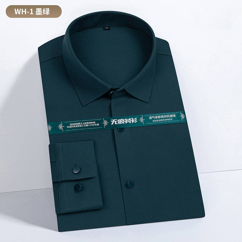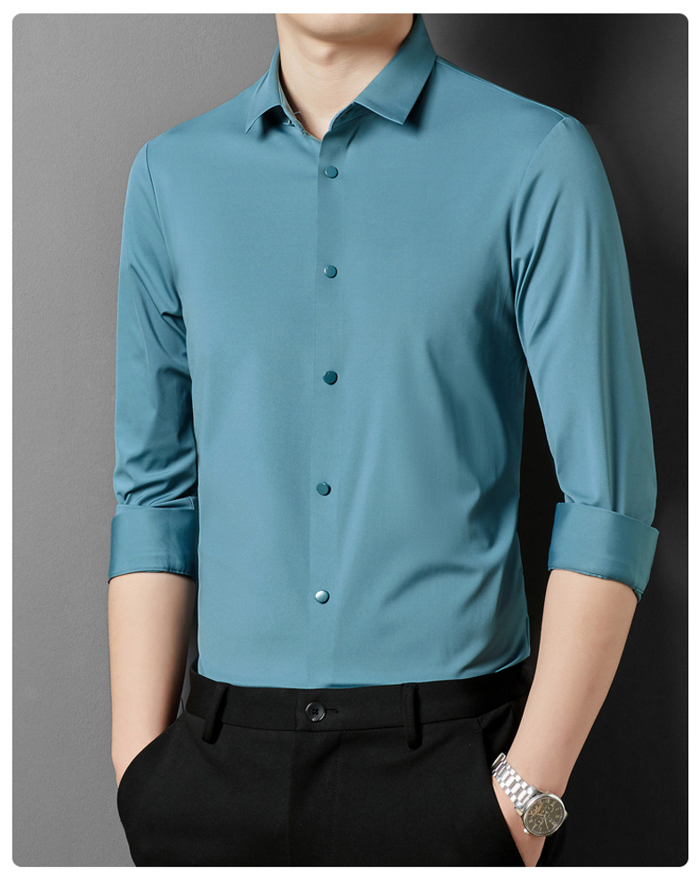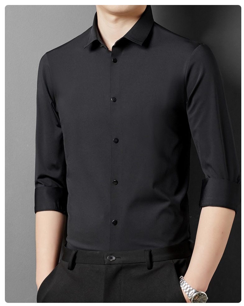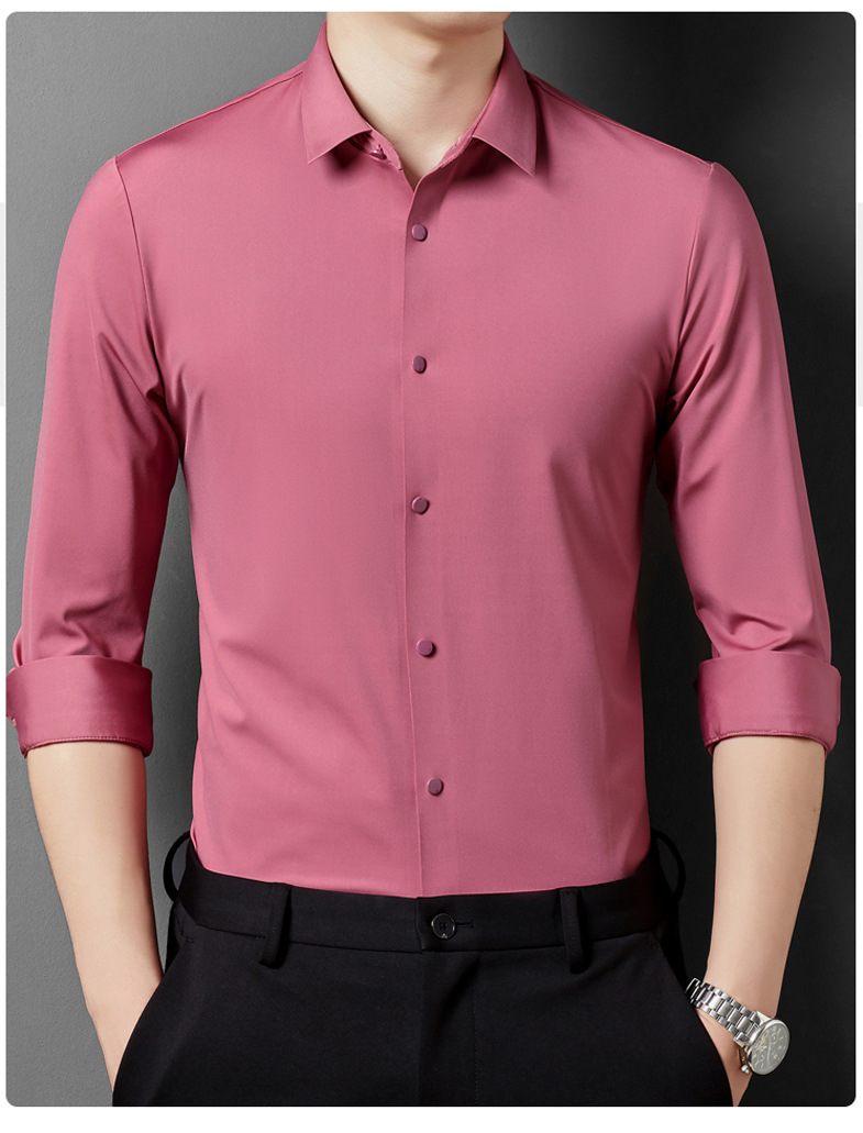엄선된 단색 고탄력 플리스 안감 무봉제 긴팔 셔츠 남성용 가디건 다림질 필요 없는 비즈니스 보온 셔츠 남성복 도매