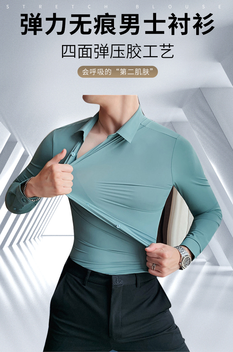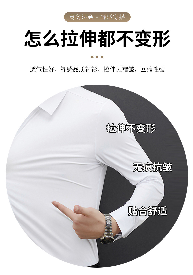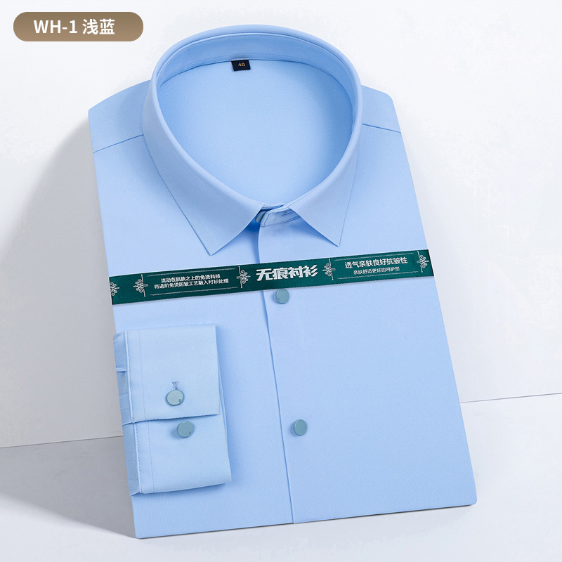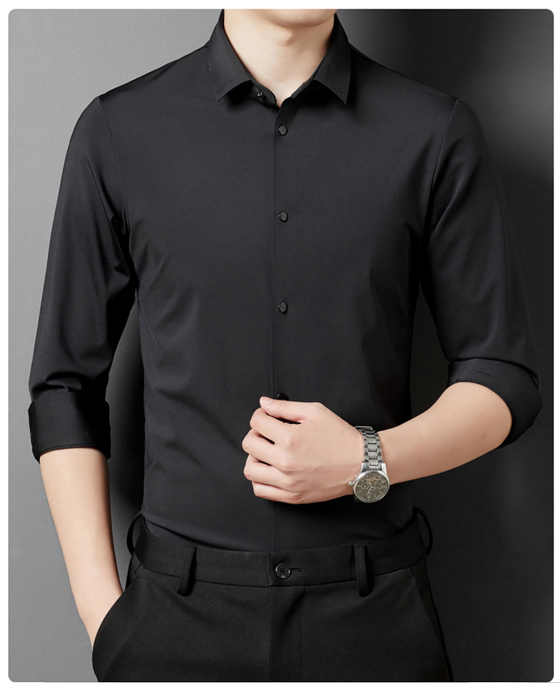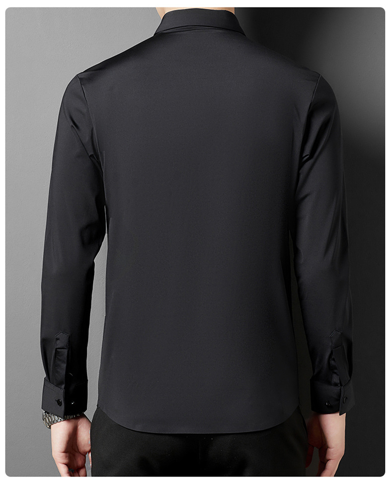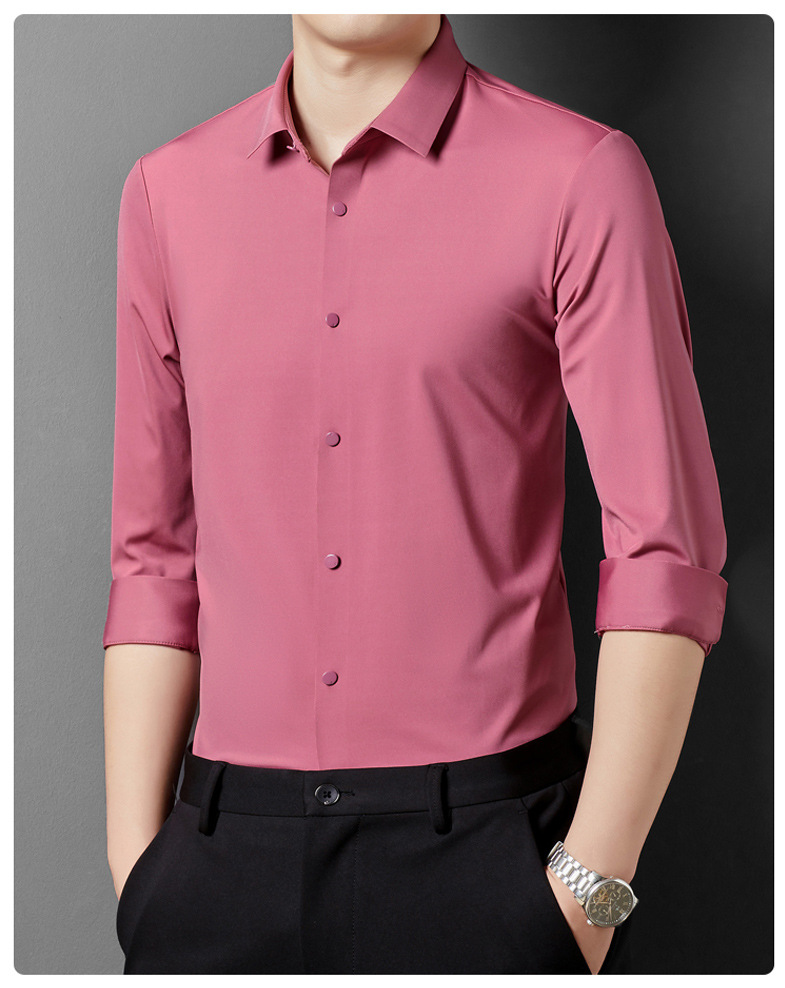 엄선된 단색 고탄력 플리스 안감 무봉제 긴팔 셔츠 남성용 가디건 다림질 필요 없는 비즈니스 보온 셔츠 남성복 도매