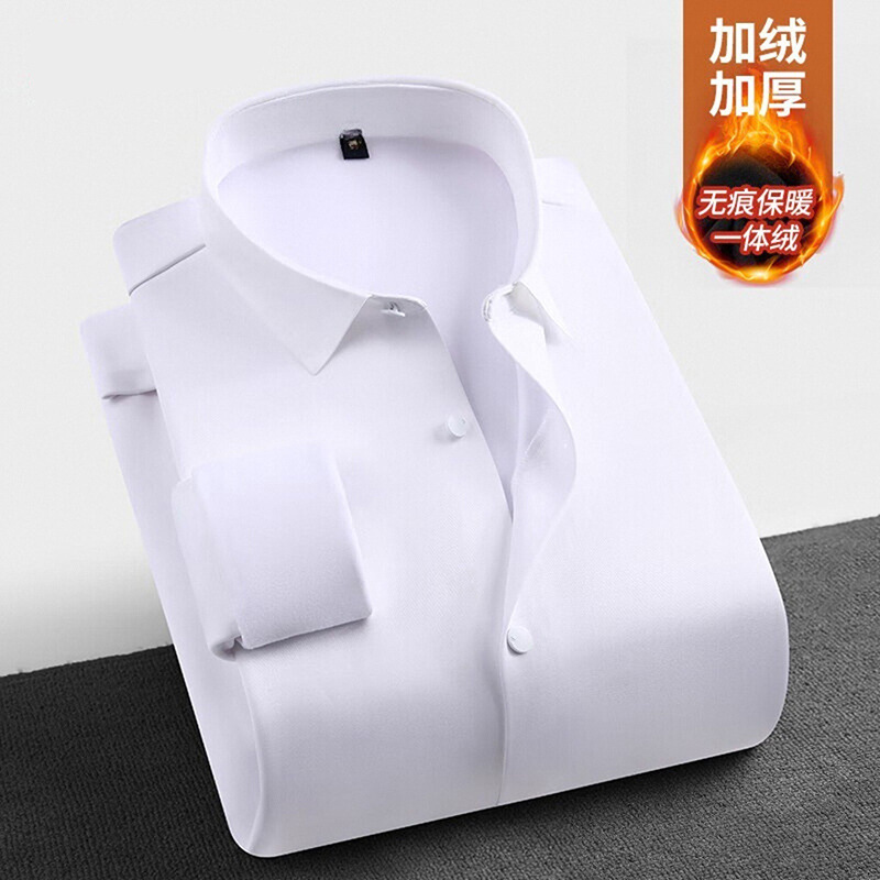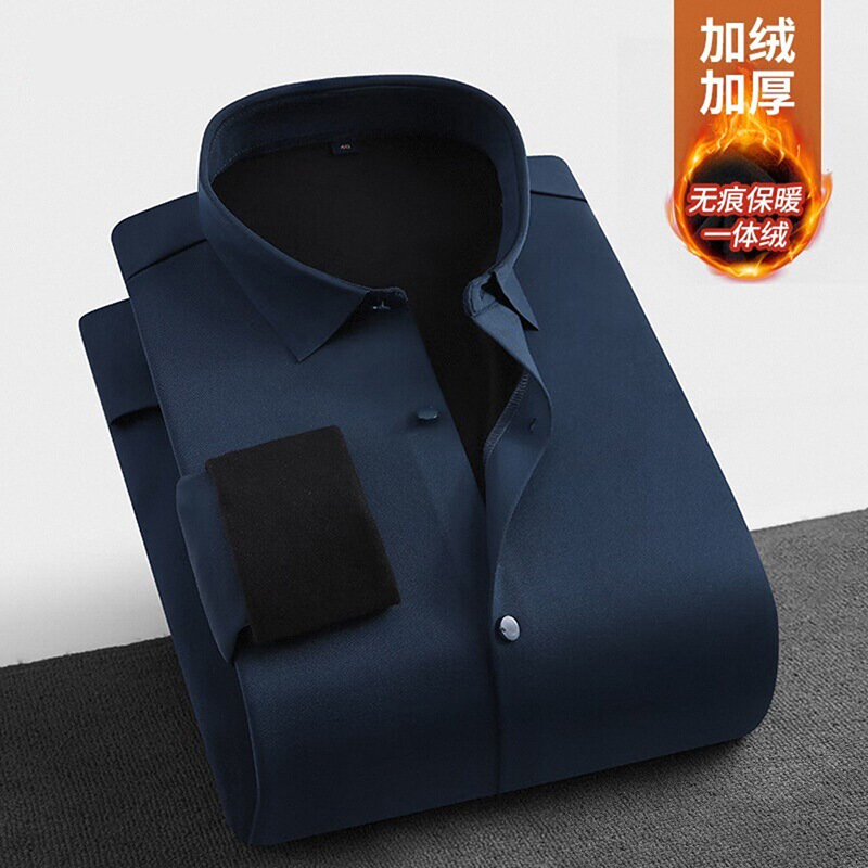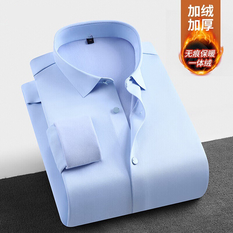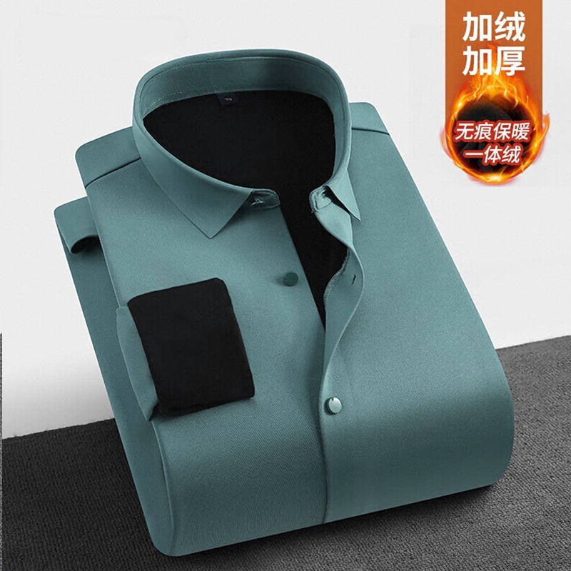 엄선된 단색 고탄력 플리스 안감 무봉제 긴팔 셔츠 남성용 가디건 다림질 필요 없는 비즈니스 보온 셔츠 남성복 도매스토어 가기