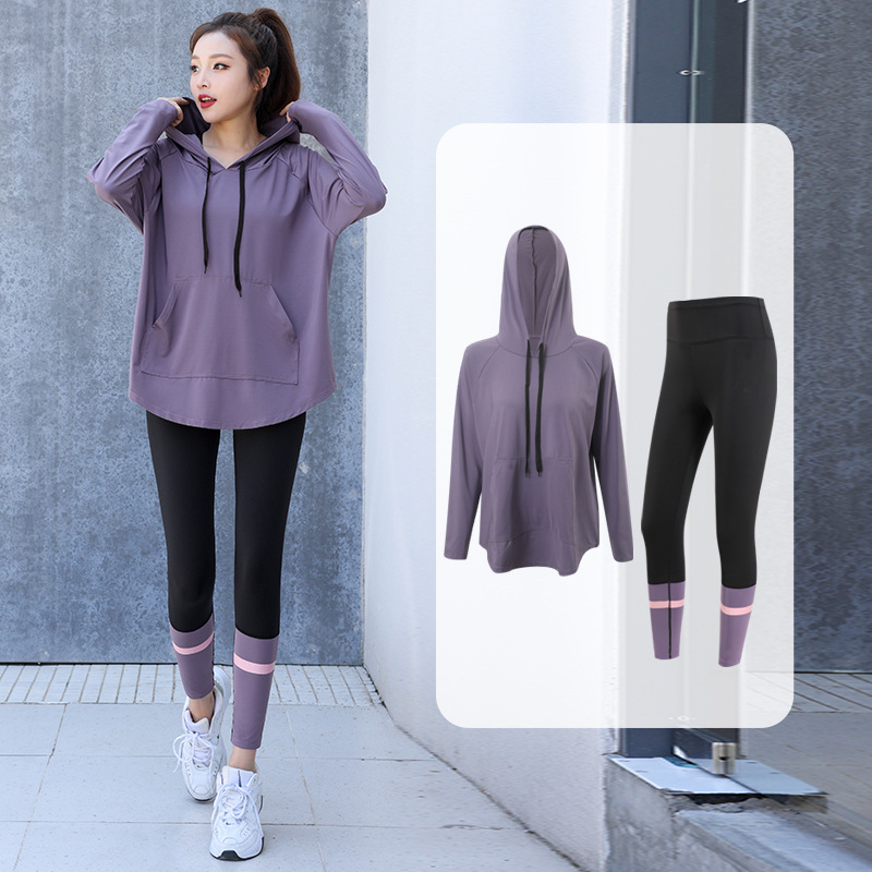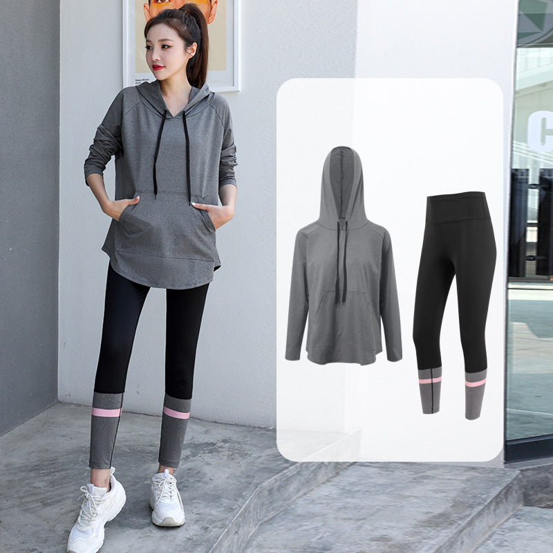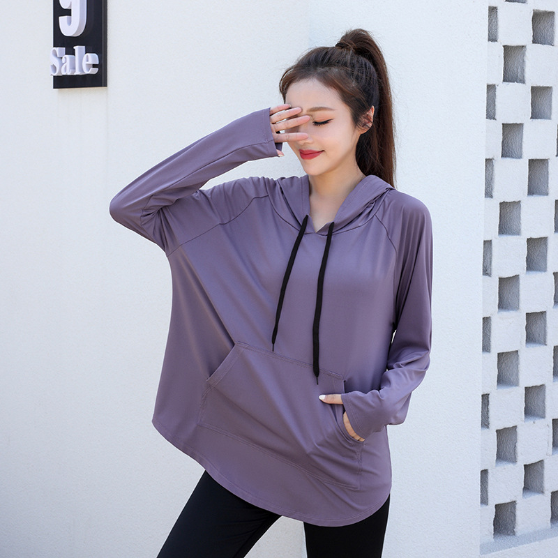 느슨한 스포츠 티셔츠 여성의 통기성 긴 소매 체육관 빠른 건조 옷 플러스 사이즈 후드 요가 옷 캐주얼 세트스토어 가기