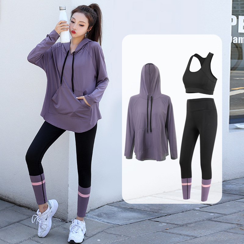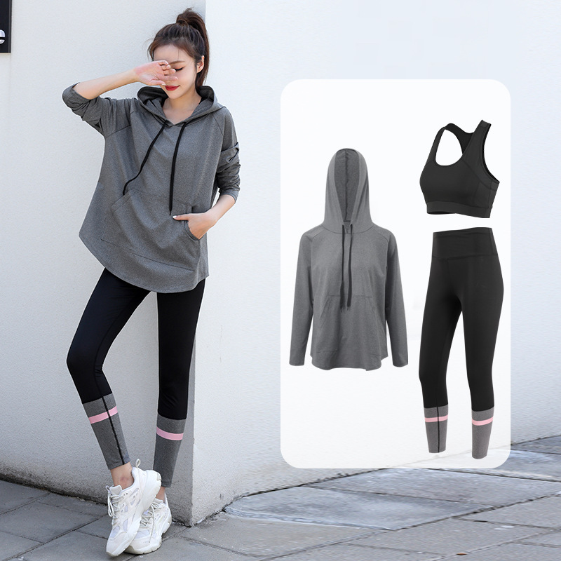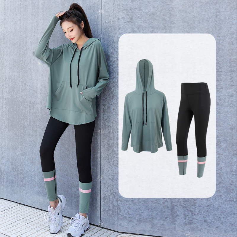 느슨한 스포츠 티셔츠 여성의 통기성 긴 소매 체육관 빠른 건조 옷 플러스 사이즈 후드 요가 옷 캐주얼 세트