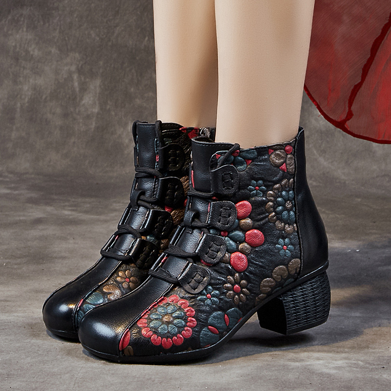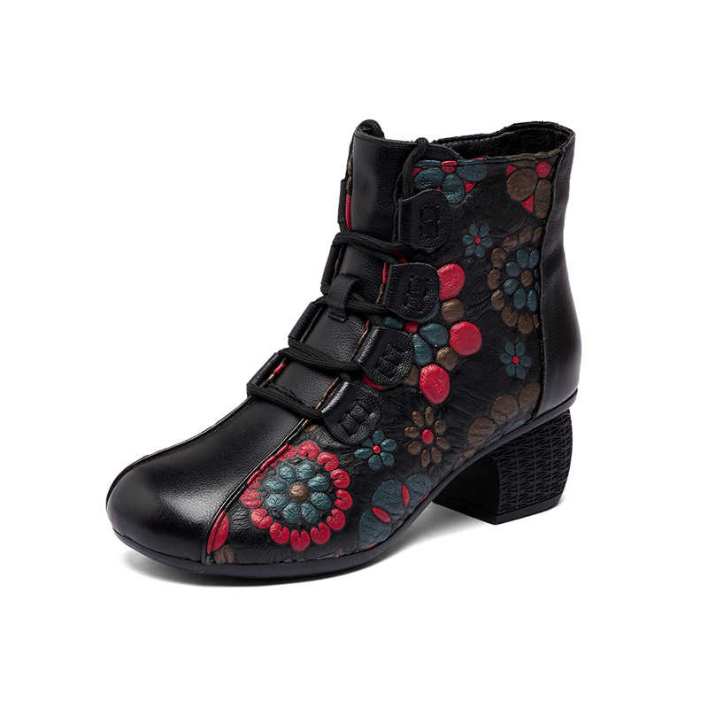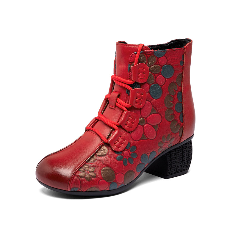 여성용 부츠 2023 새로운 겨울 기모 따뜻한 중년 짧은 부츠 탑 레이어 소가죽 두꺼운 굽 부드러운 바닥 마틴 부츠스토어 가기