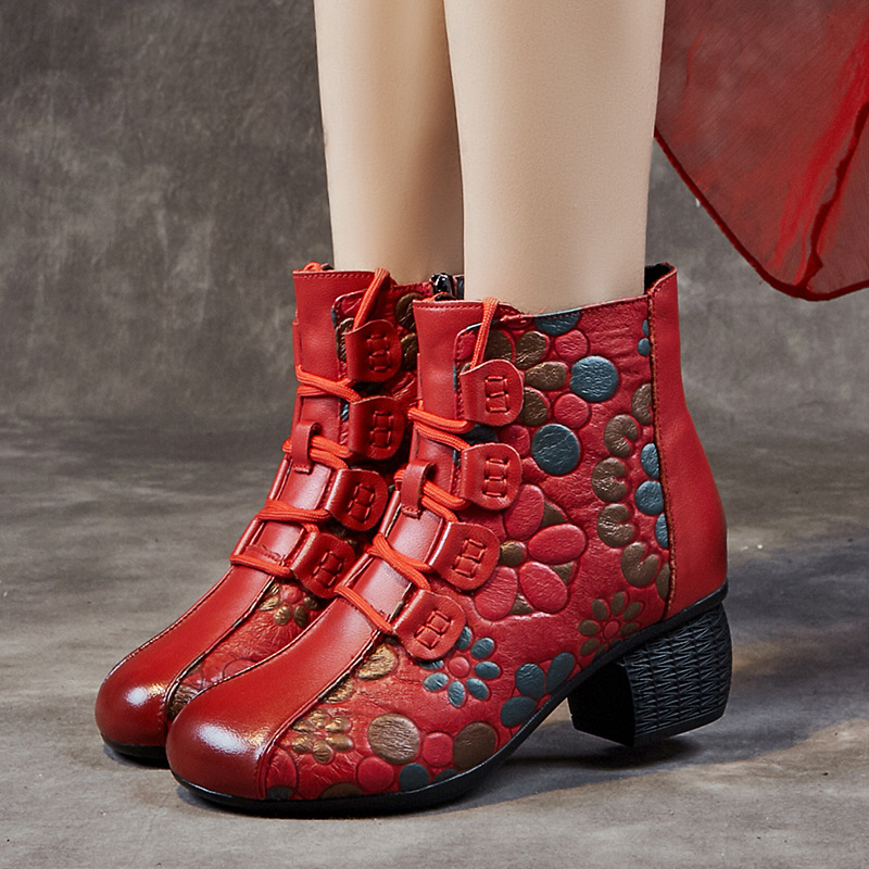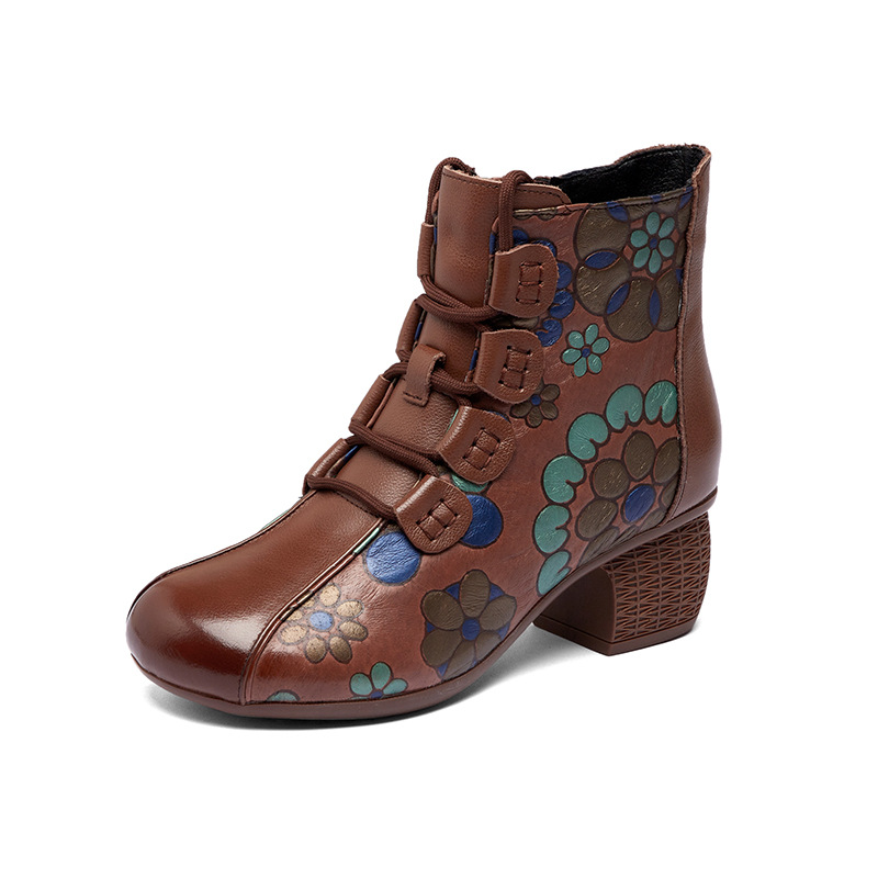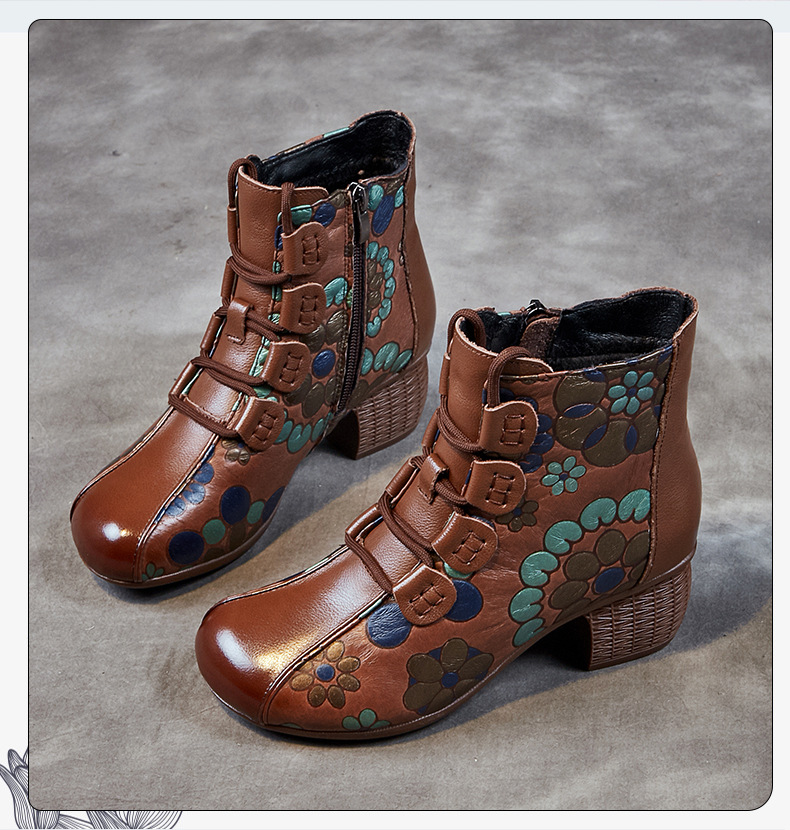 여성용 부츠 2023 새로운 겨울 기모 따뜻한 중년 짧은 부츠 탑 레이어 소가죽 두꺼운 굽 부드러운 바닥 마틴 부츠