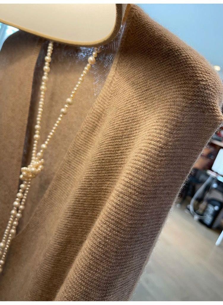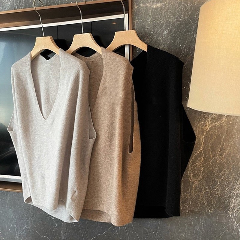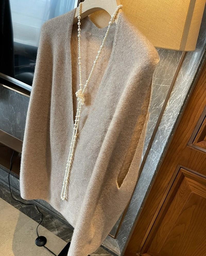 쌓이고 쌓인 풀 울 조끼 여성용 느슨한 슬림 아우터 V-넥 민소매 조끼 니트 조끼