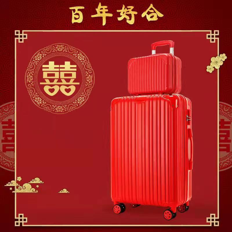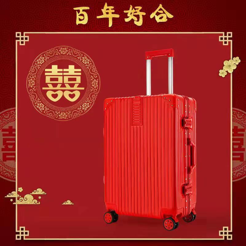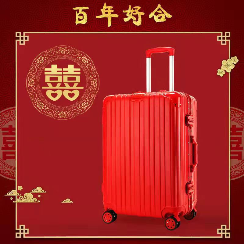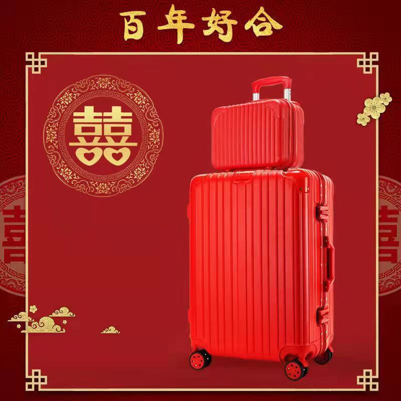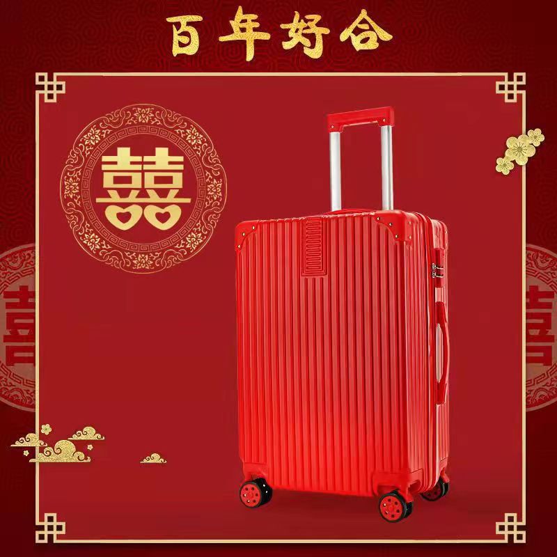 여성과 남성을위한 웨딩 수하물 케이스 20 인치 보드 케이스 대형 레드 유니버설 휠 트롤리 케이스 동반 케이스 가방 암호스토어 가기