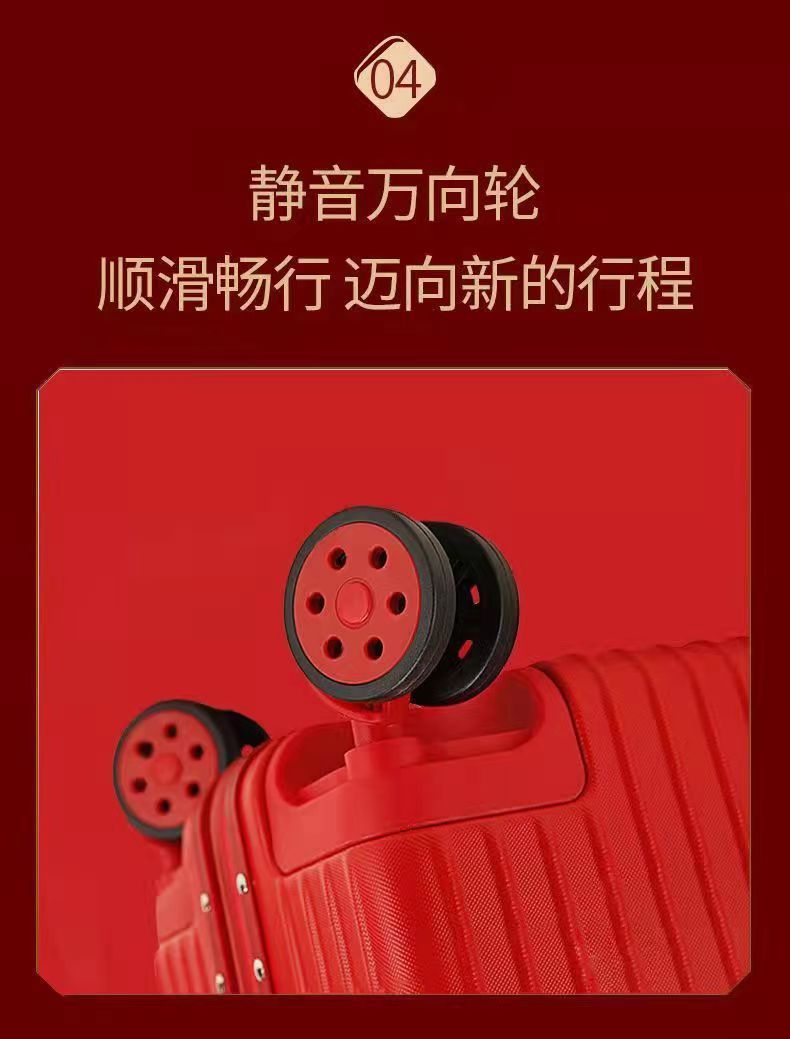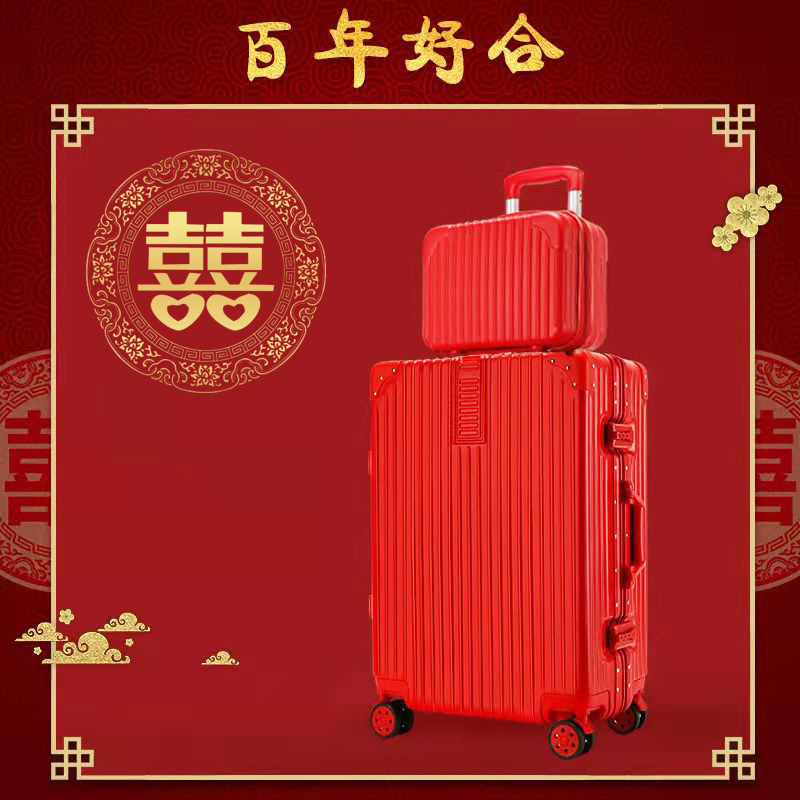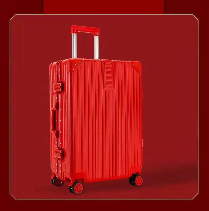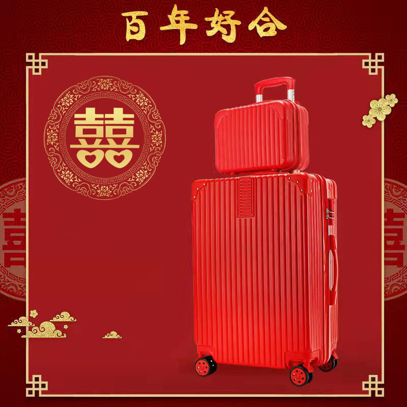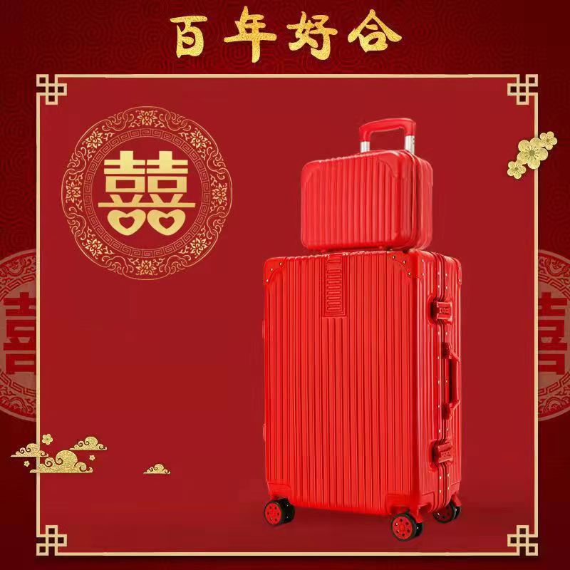 여성과 남성을위한 웨딩 수하물 케이스 20 인치 보드 케이스 대형 레드 유니버설 휠 트롤리 케이스 동반 케이스 가방 암호스토어 가기
