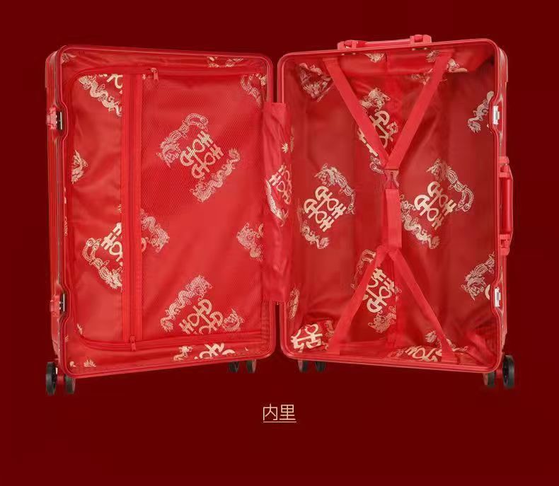 여성과 남성을위한 웨딩 수하물 케이스 20 인치 보드 케이스 대형 레드 유니버설 휠 트롤리 케이스 동반 케이스 가방 암호