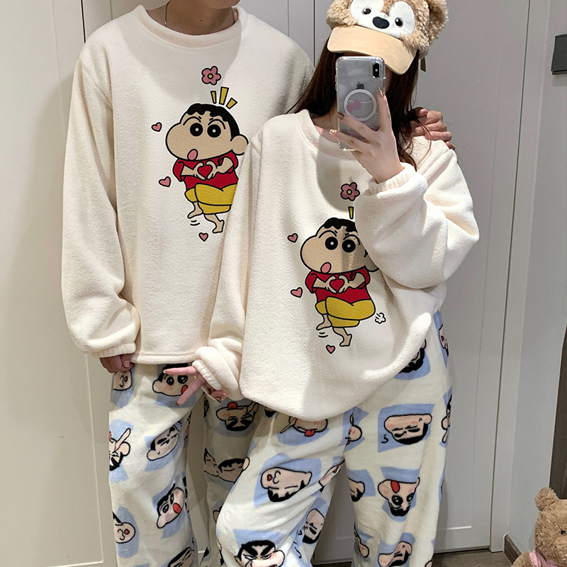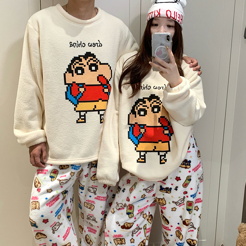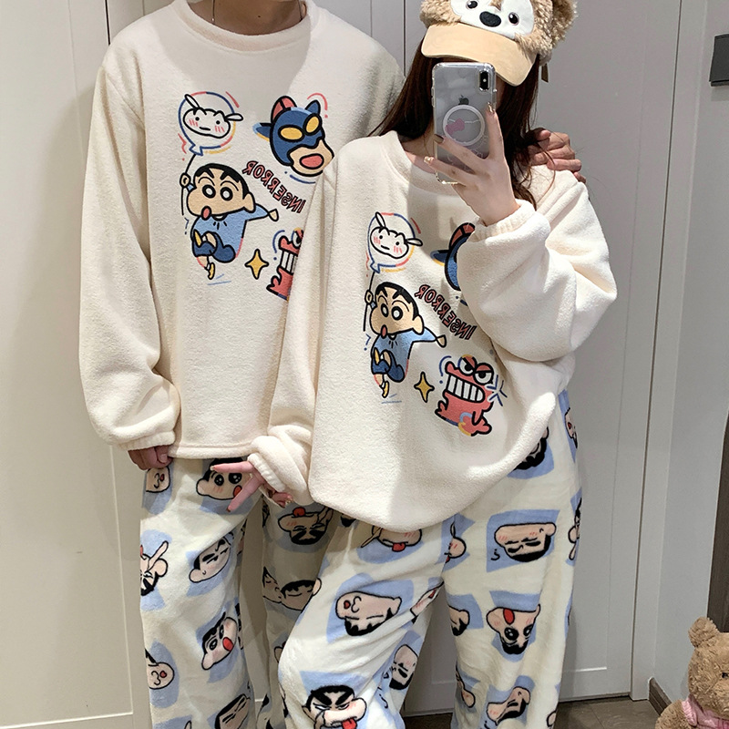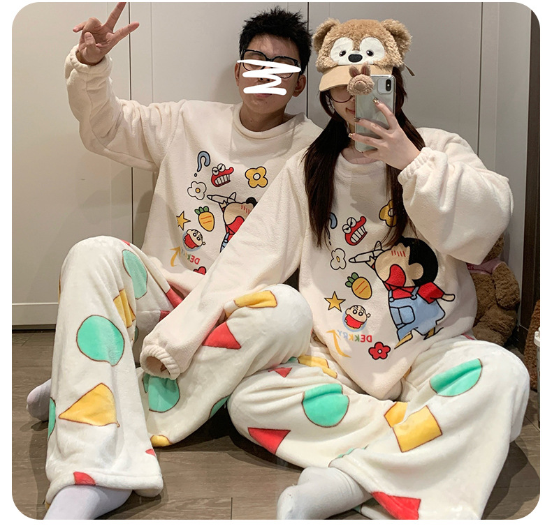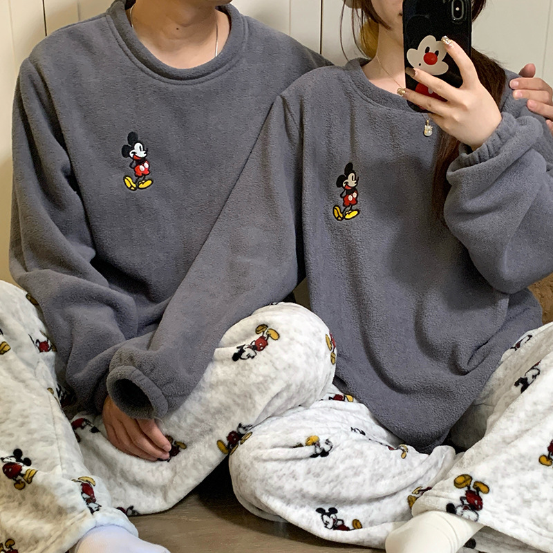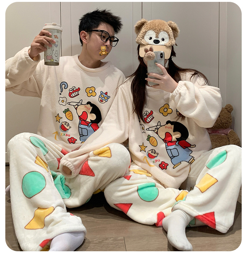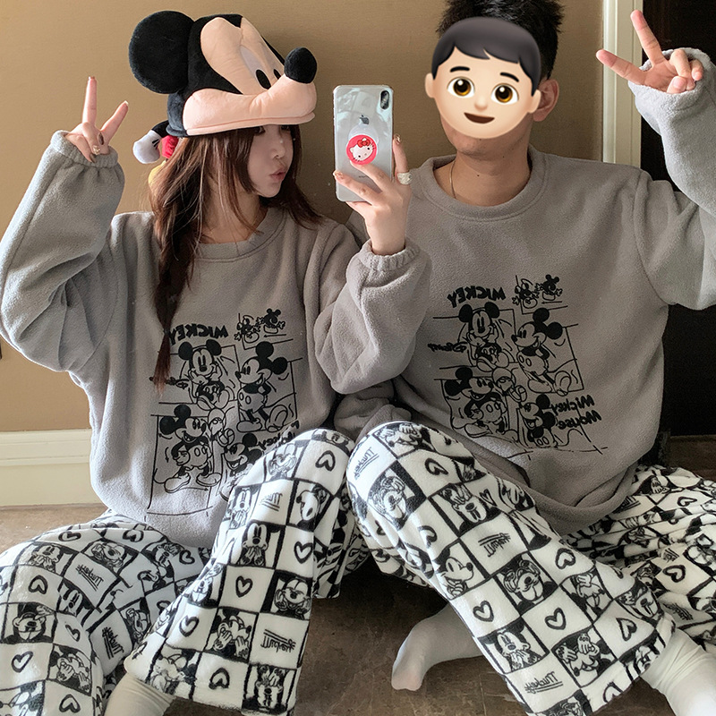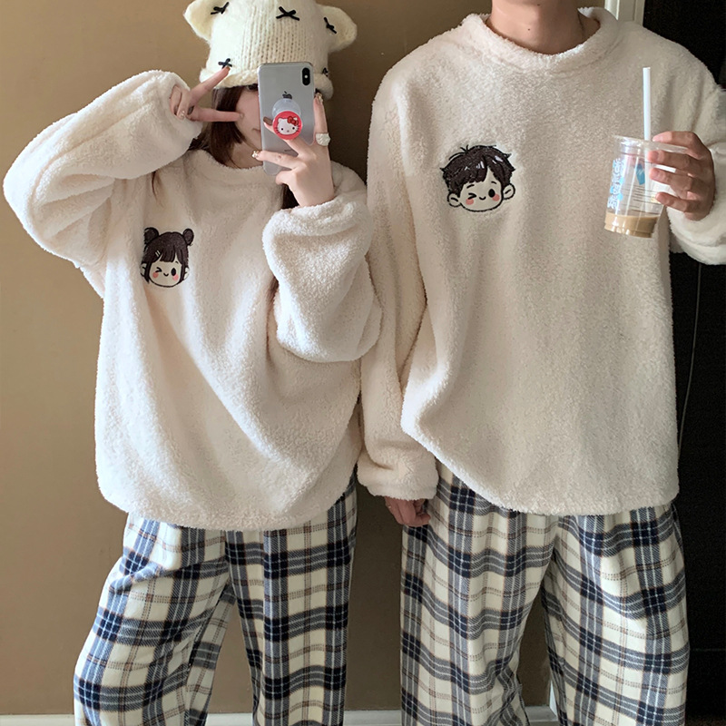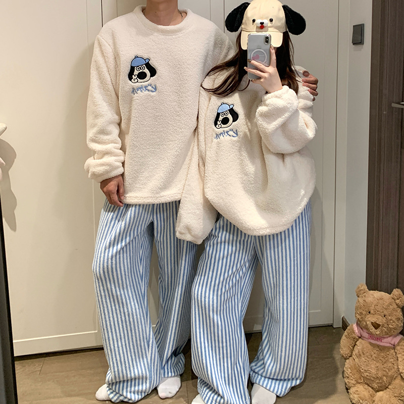 가을과 겨울 새로운 커플의 쌀 벨벳 잠옷 여자의 두꺼운 긴 머리 산호 벨벳 남자의 아웃웨어 세트