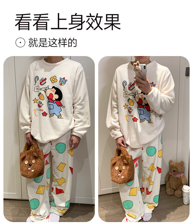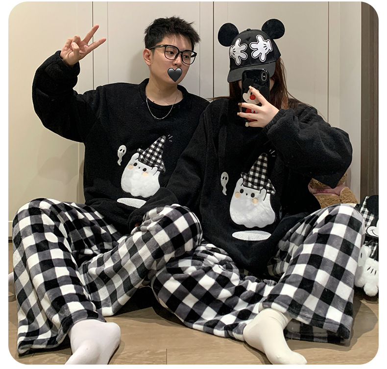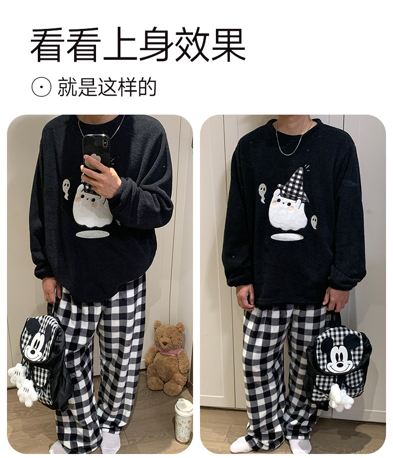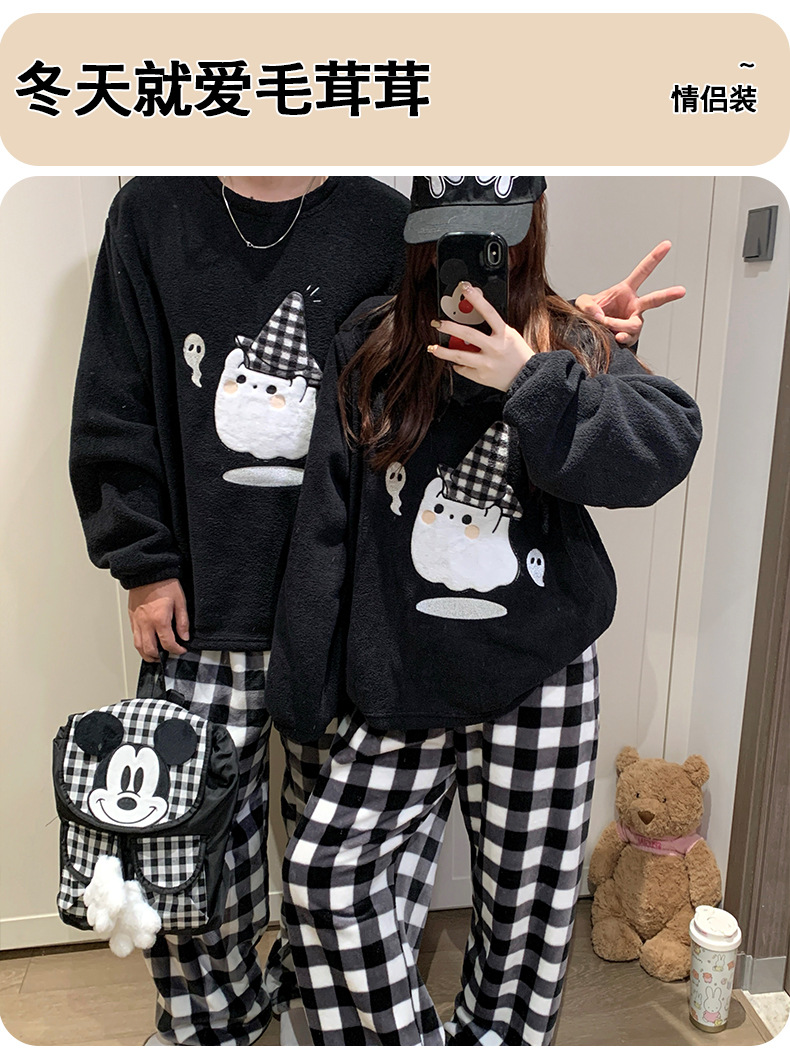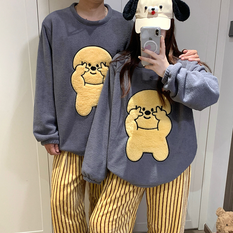 가을과 겨울 새로운 커플의 쌀 벨벳 잠옷 여자의 두꺼운 긴 머리 산호 벨벳 남자의 아웃웨어 세트스토어 가기