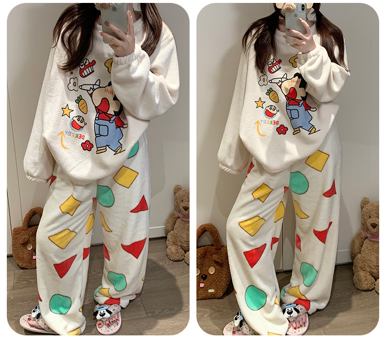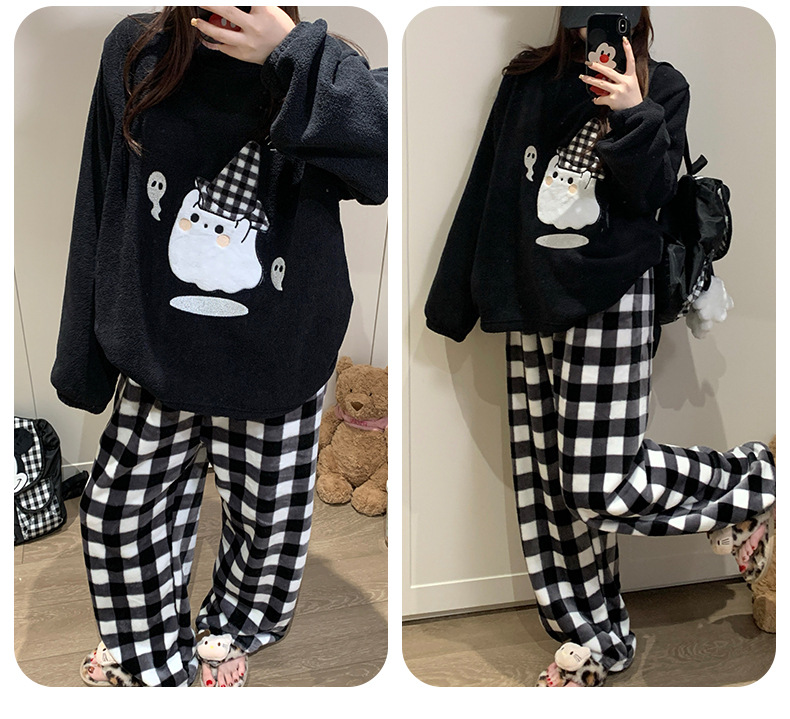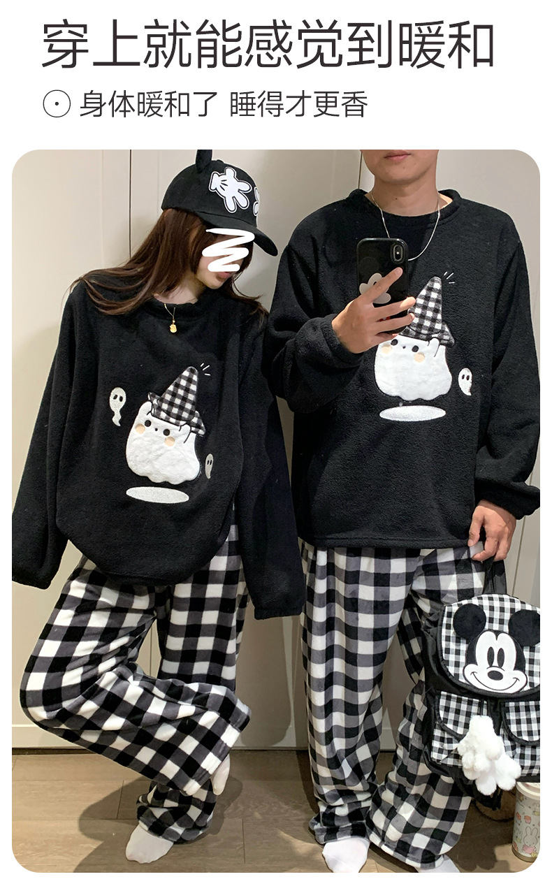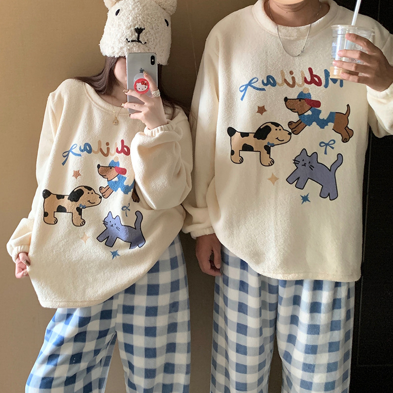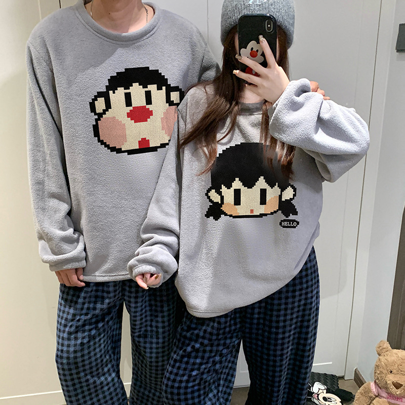 가을과 겨울 새로운 커플의 쌀 벨벳 잠옷 여자의 두꺼운 긴 머리 산호 벨벳 남자의 아웃웨어 세트스토어 가기