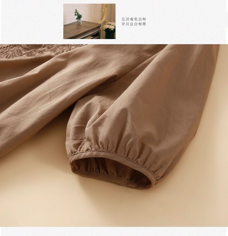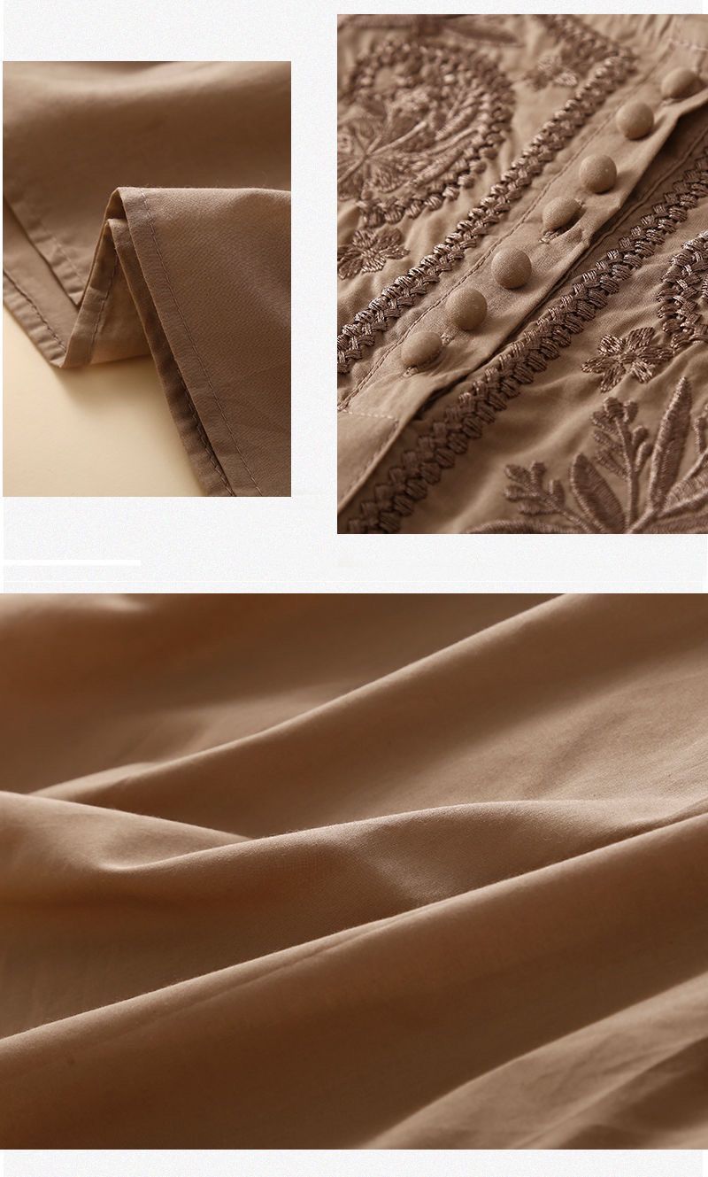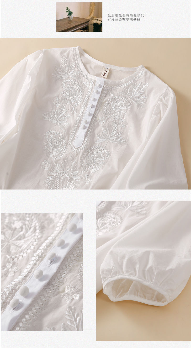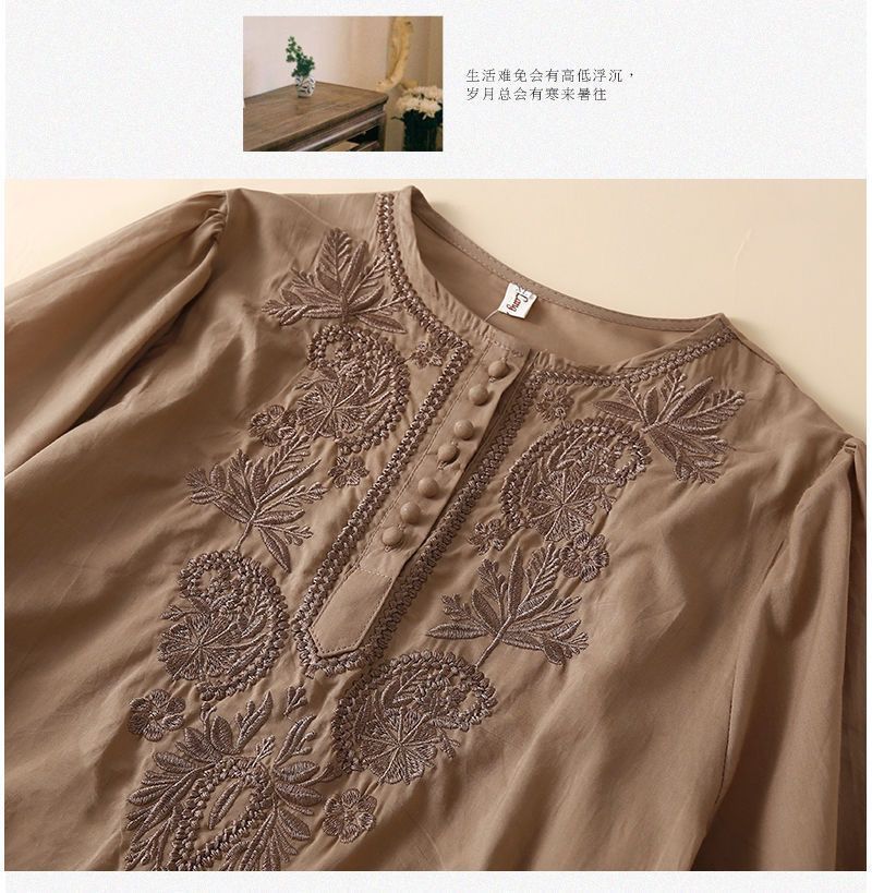 대외 무역 수출 외국 스타일 여름 새로운 느슨한 슬리밍 크루넥 티셔츠 여성의 예술적 단색 자수 면과 린넨 탑