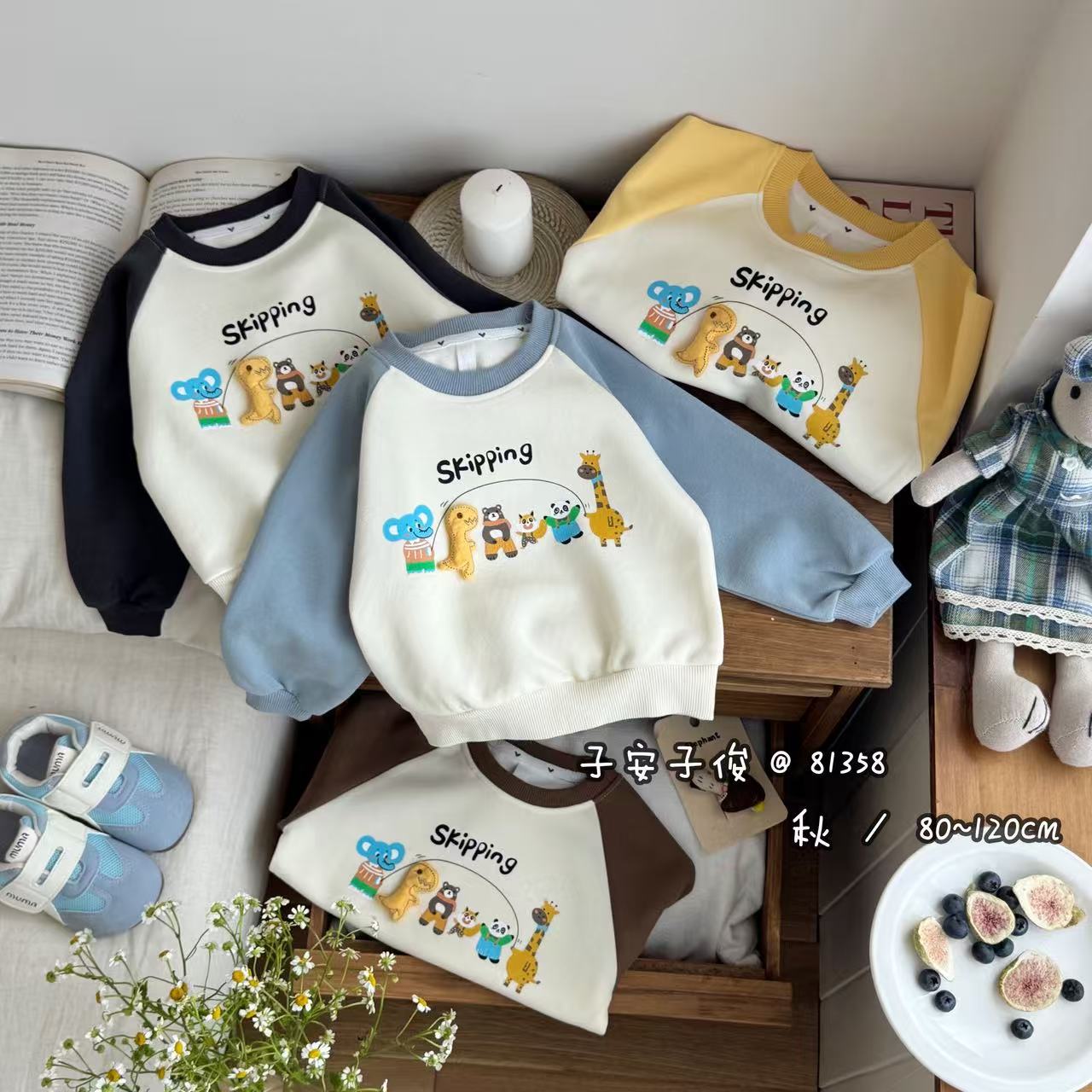 지안즈주엔 아동복 2025 가을 신상 아동 긴팔 티셔츠 유아 남아 라운드넥 긴팔 상의