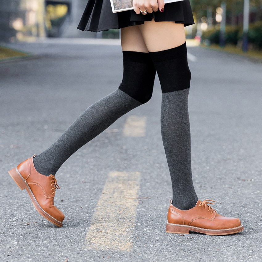 여성용 컬러 매칭 코튼 오버 더-더-무릎 양말 여성 양말 예술적 병입 양말 긴 튜브 코튼 슬림 하이 허벅지 양말 도매스토어 가기